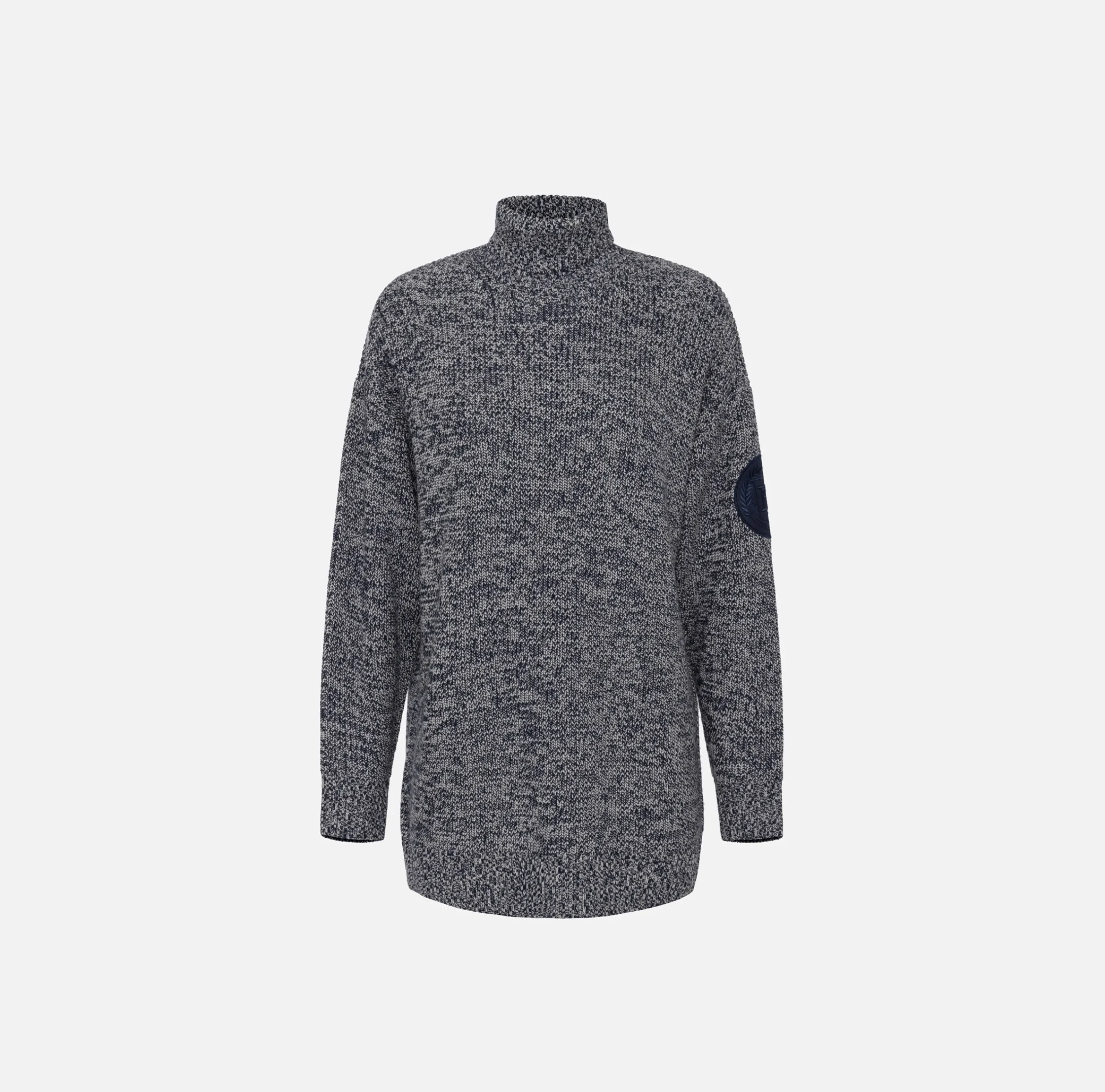 Dolcevita in viscosa mouliné punto pannocchia con spalle scese. È caratterizzato da patch logo ricamato sulla manica.