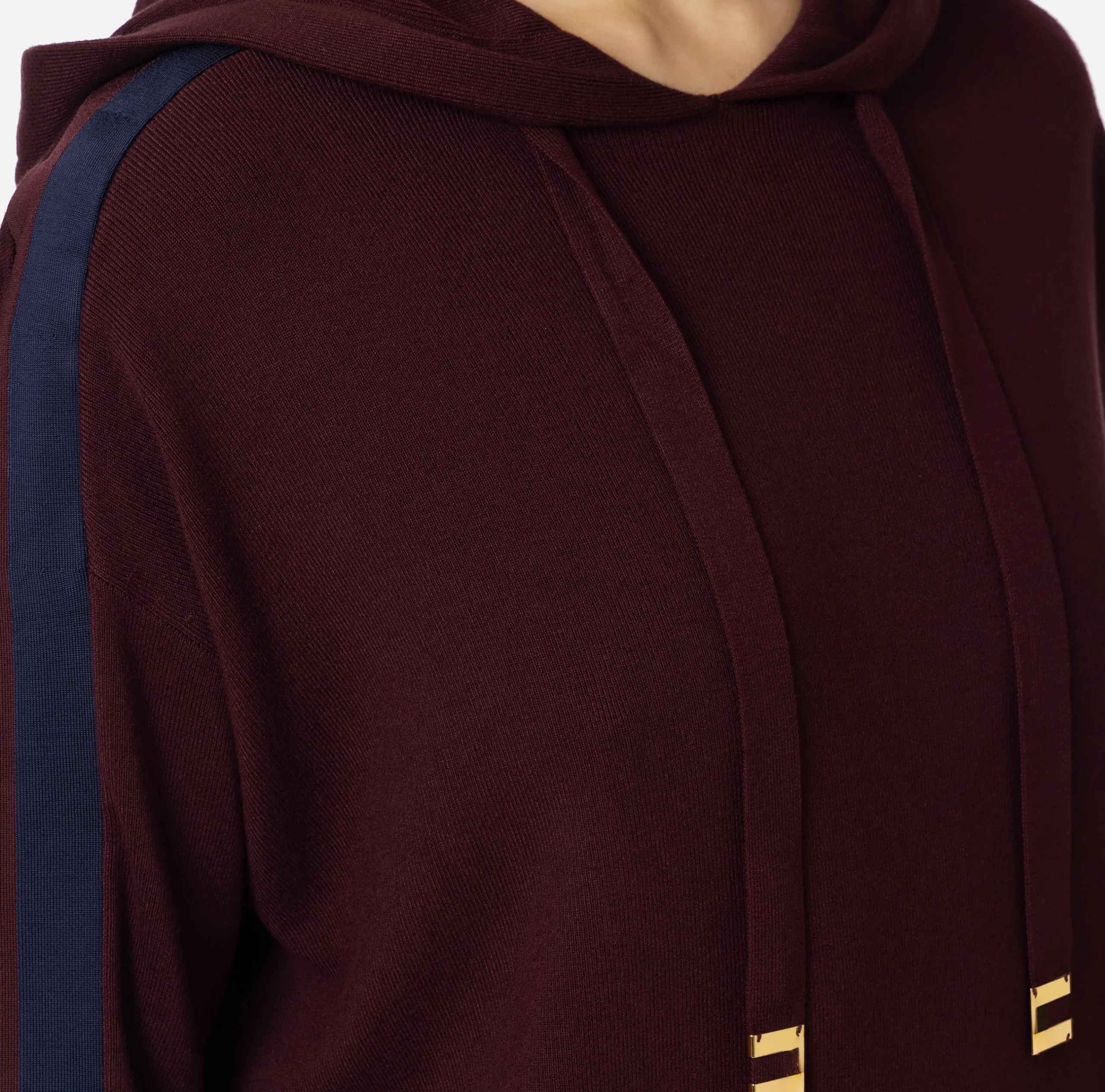 Maglieria E Felpe|Elisabetta Franchi Felpa con cappuccio in viscosa con bande logo Oro