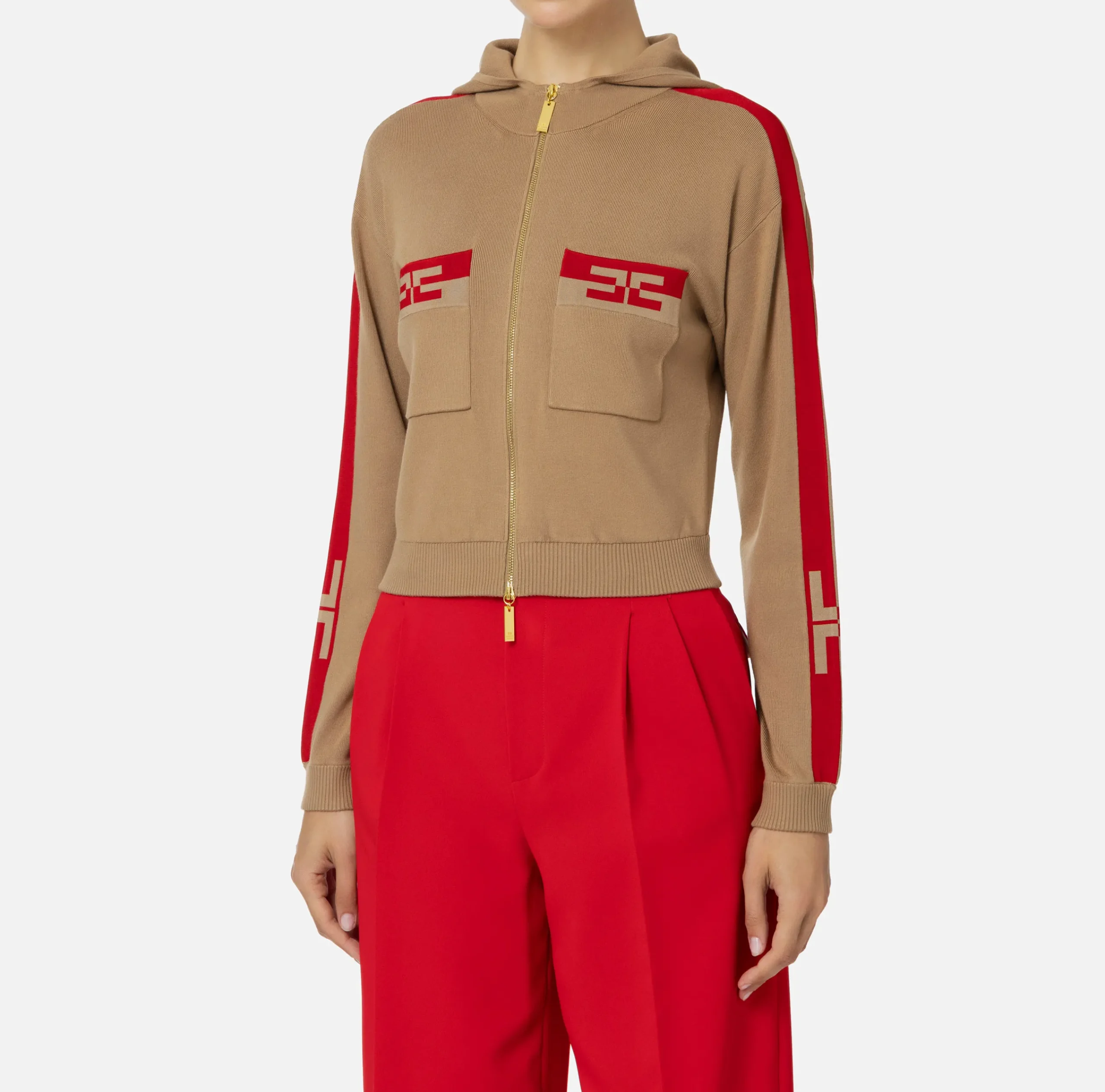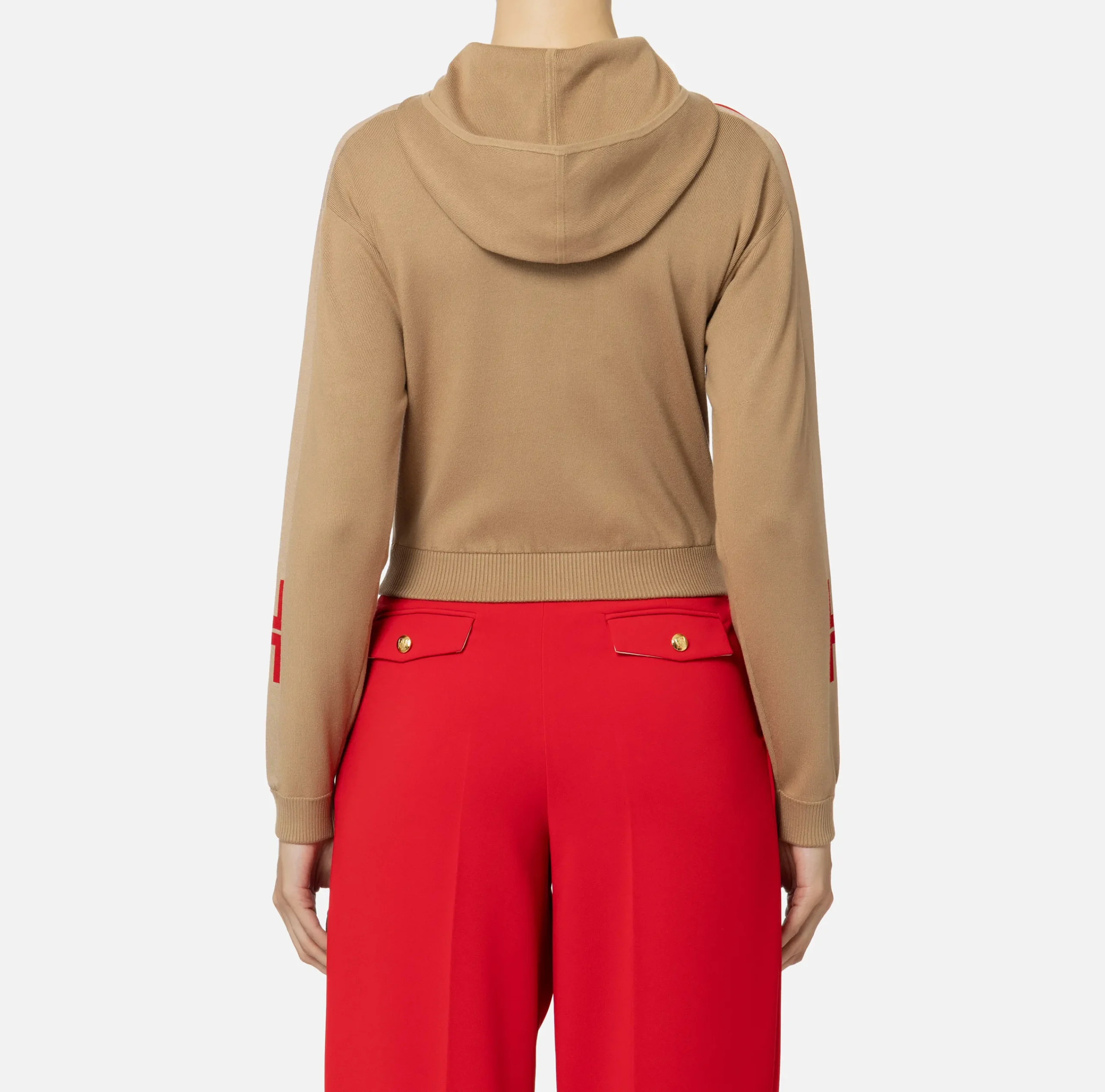Maglieria E Felpe|Elisabetta Franchi Felpa cropped in viscosa con bande logo Camel/RedPassion