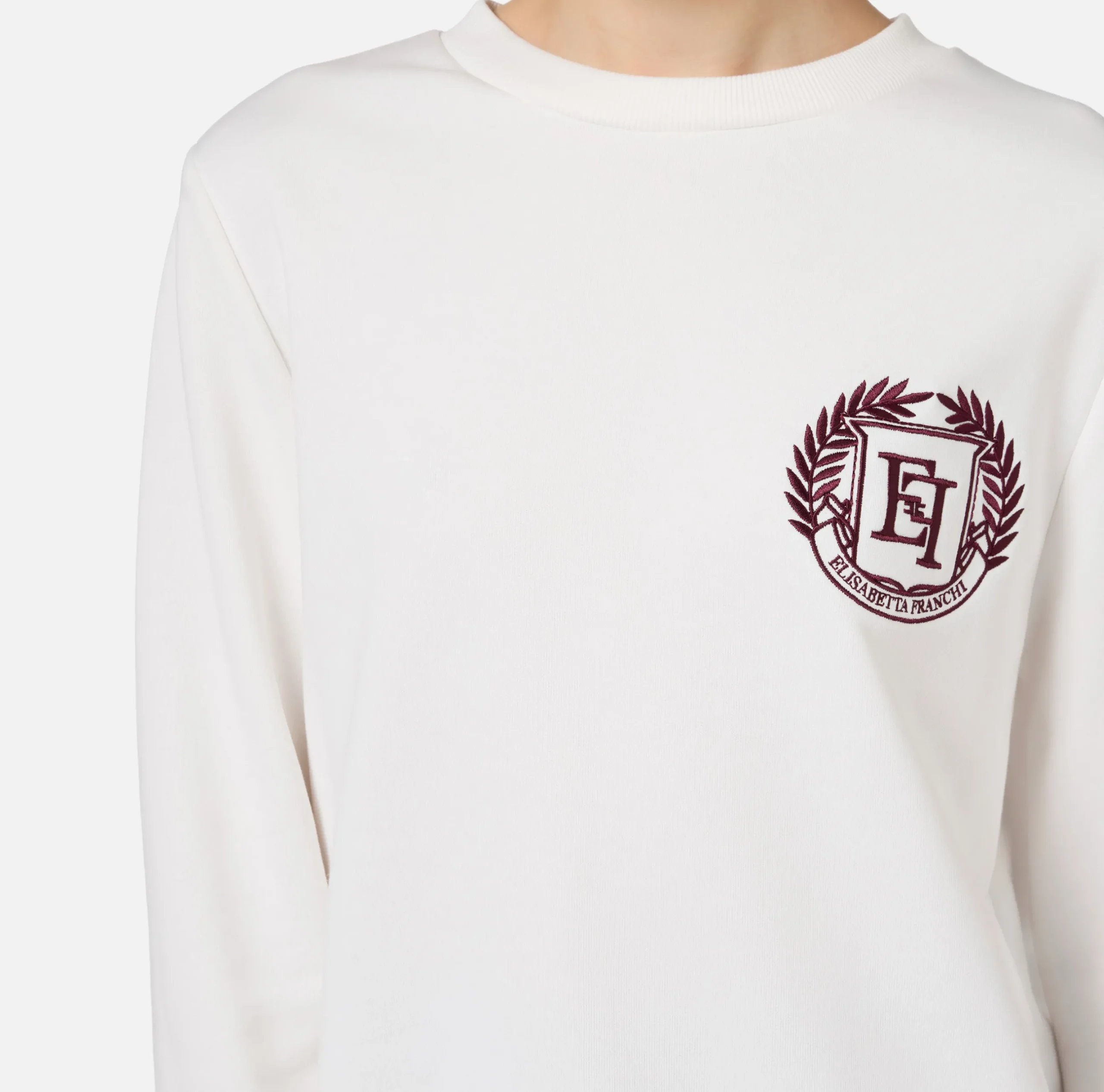 Maglieria E Felpe|Elisabetta Franchi Felpa in cotone con ricamo stemma Avorio
