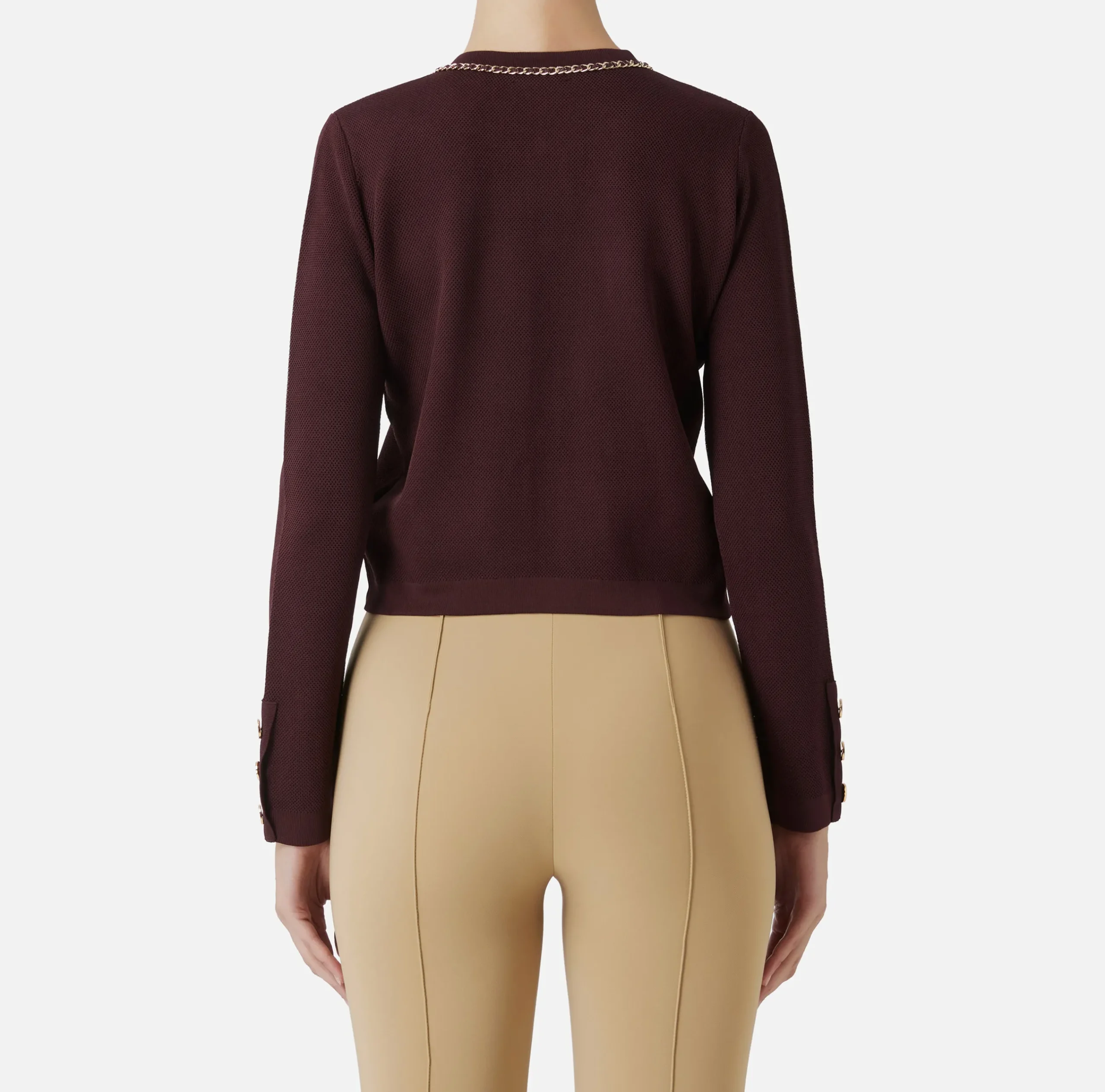 Maglieria E Felpe|Elisabetta Franchi Giacca cropped in viscosa con catena RougeNoir