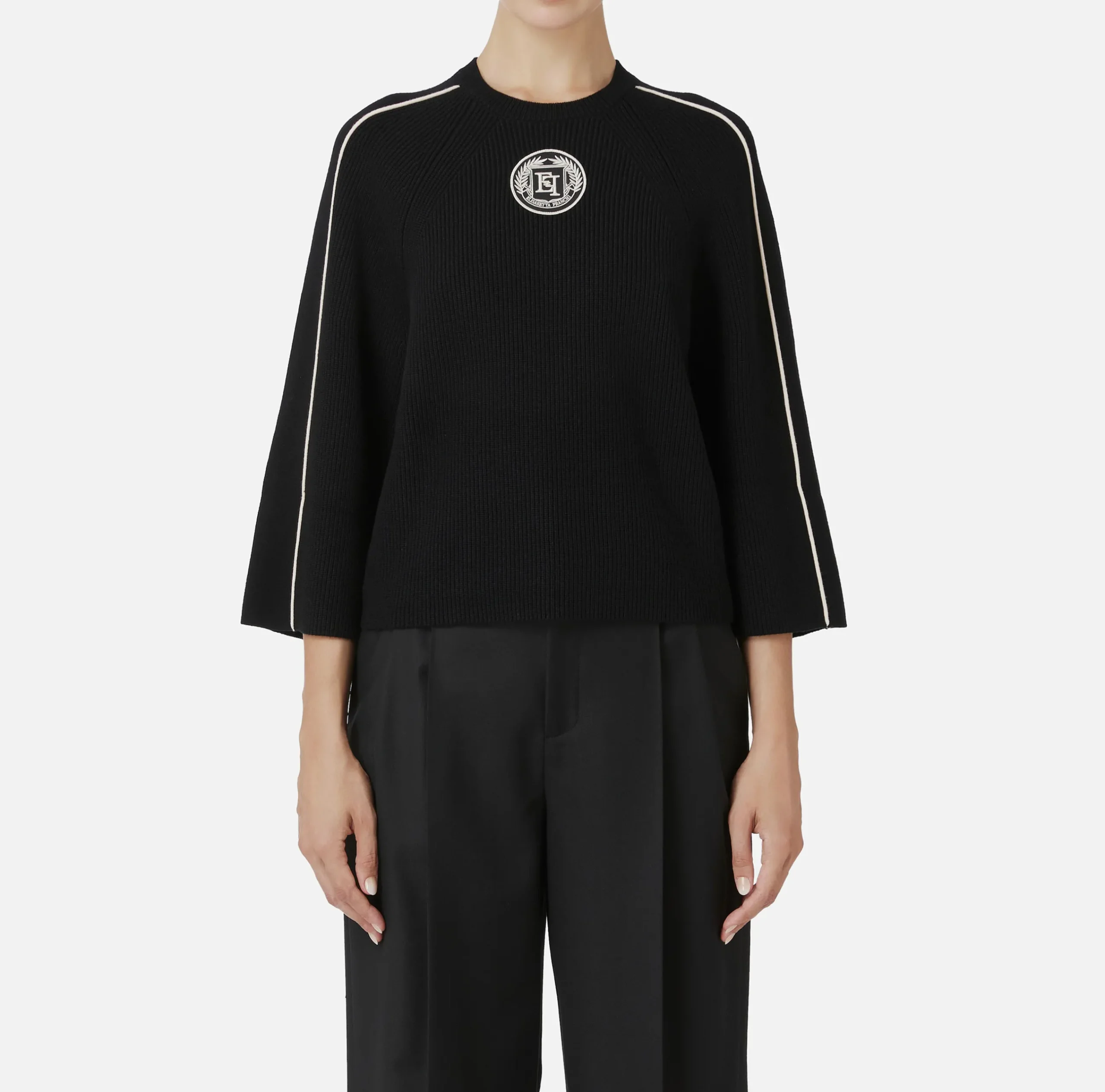 Maglia cropped in viscosa punto pannocchia con maniche raglan. È caratterizzata da patch logo ricamato davanti e bande in punto stoffa sulle spalle con profili in contrasto colore.