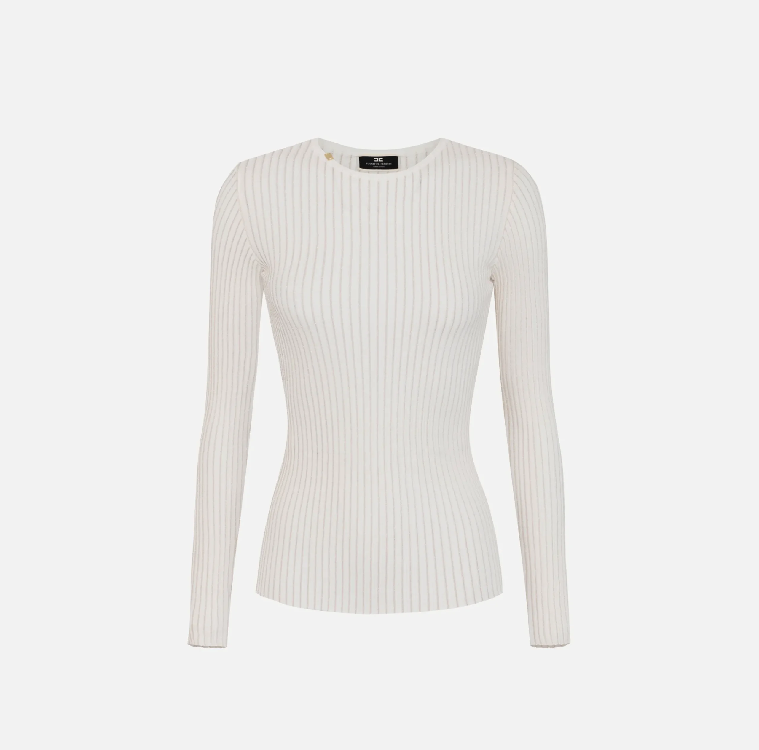 Maglieria E Felpe|Elisabetta Franchi Maglia girocollo in viscosa e lurex a costine Avorio