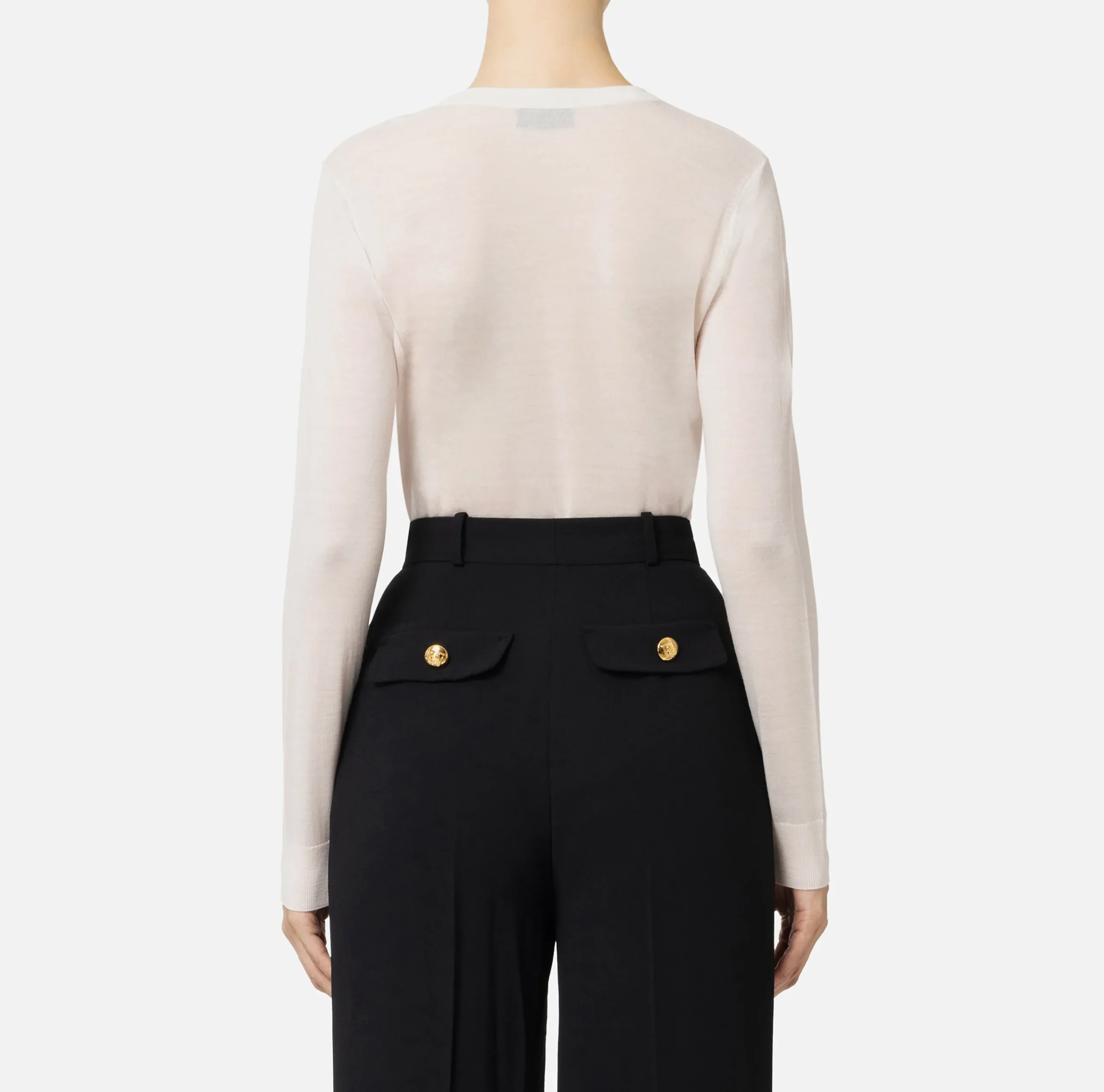 Maglia in lana merino a maniche lunghe con logo jacquard in contrasto colore sullo scollo a giro.