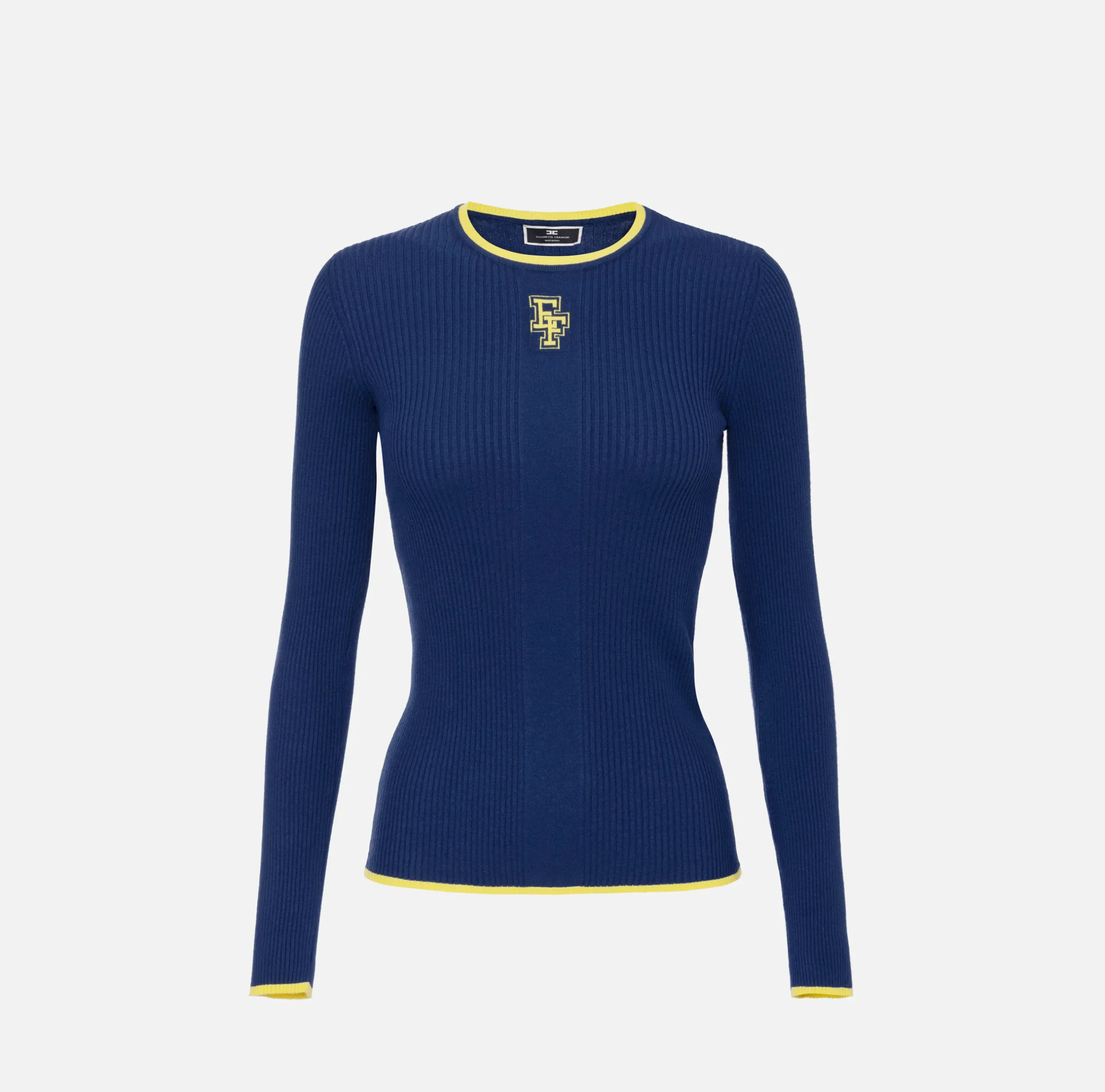 Be the first to review “Maglieria E Felpe|Elisabetta Franchi Maglia in viscosa con logo college Navy/Mimosa” Annulla risposta
