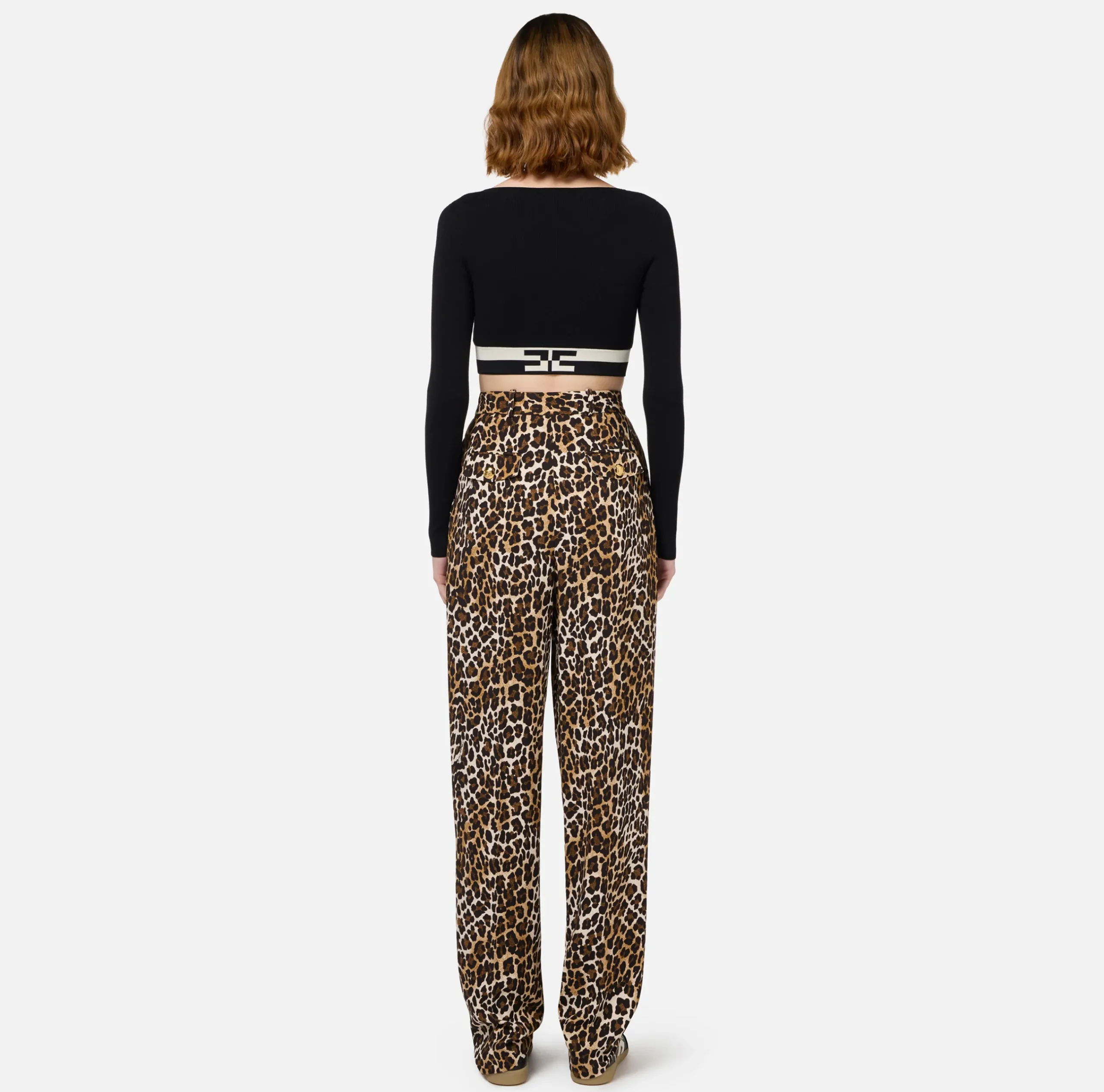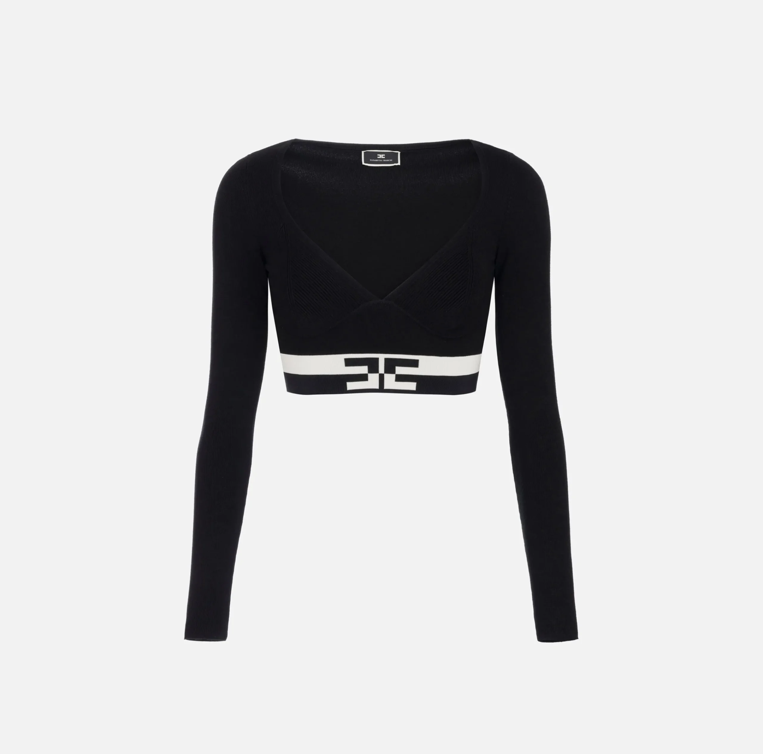 Maglieria E Felpe|Elisabetta Franchi Top cropped in viscosa con bande logo Nero/Burro