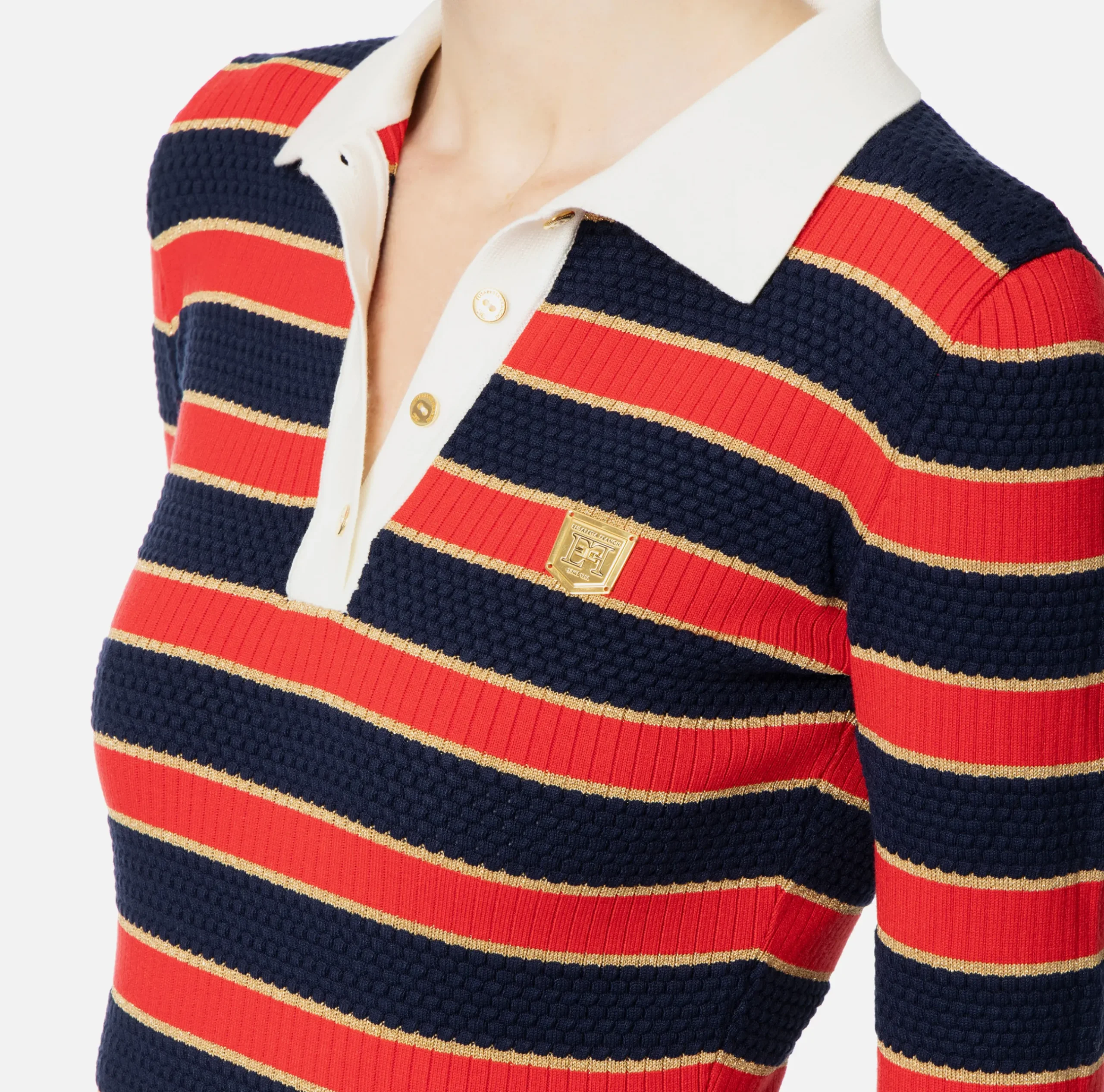 Mini Abiti|Abiti In Maglia|Elisabetta Franchi Miniabito a polo in viscosa lurex a righe RedPassion/BlueNavy