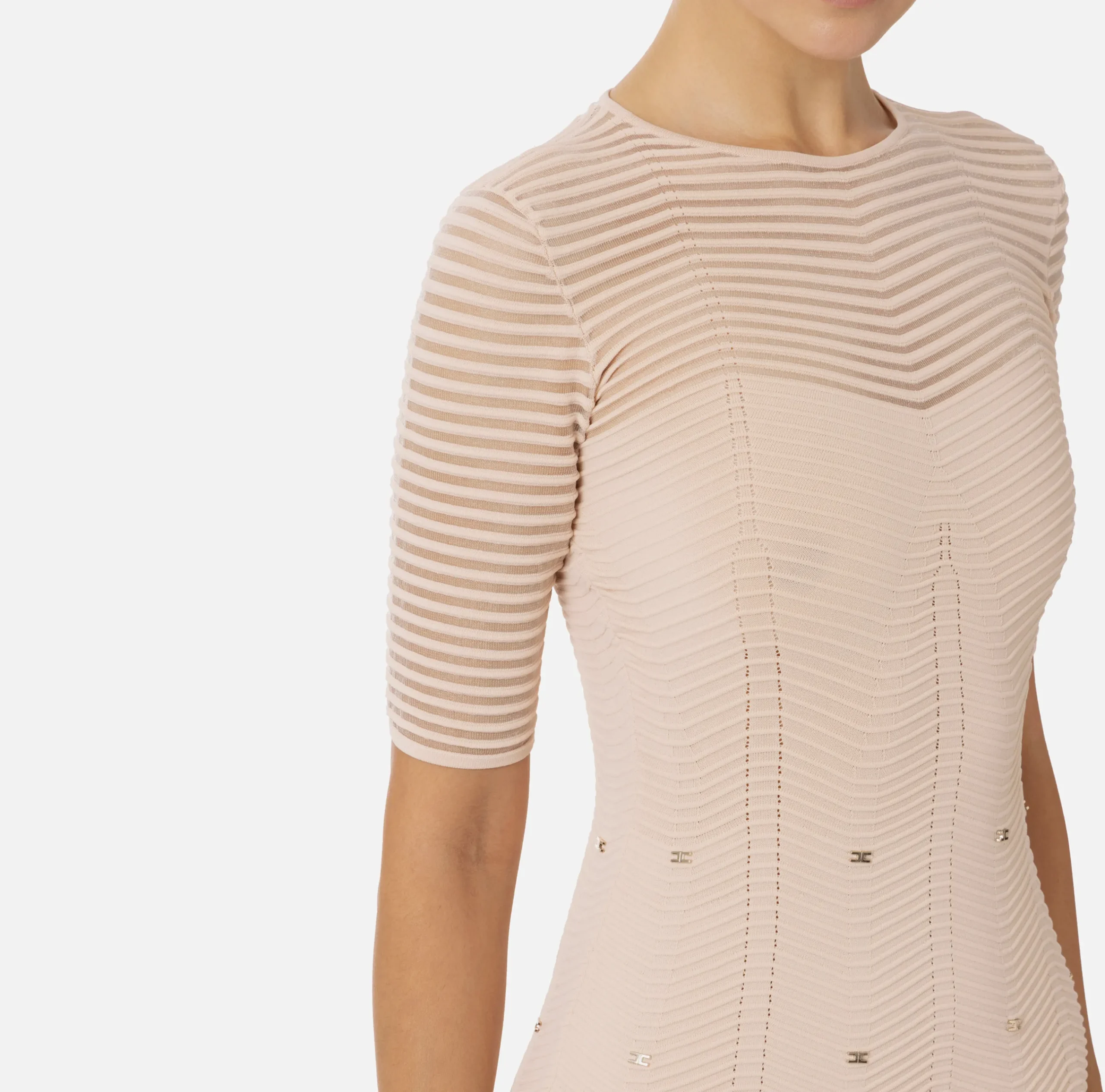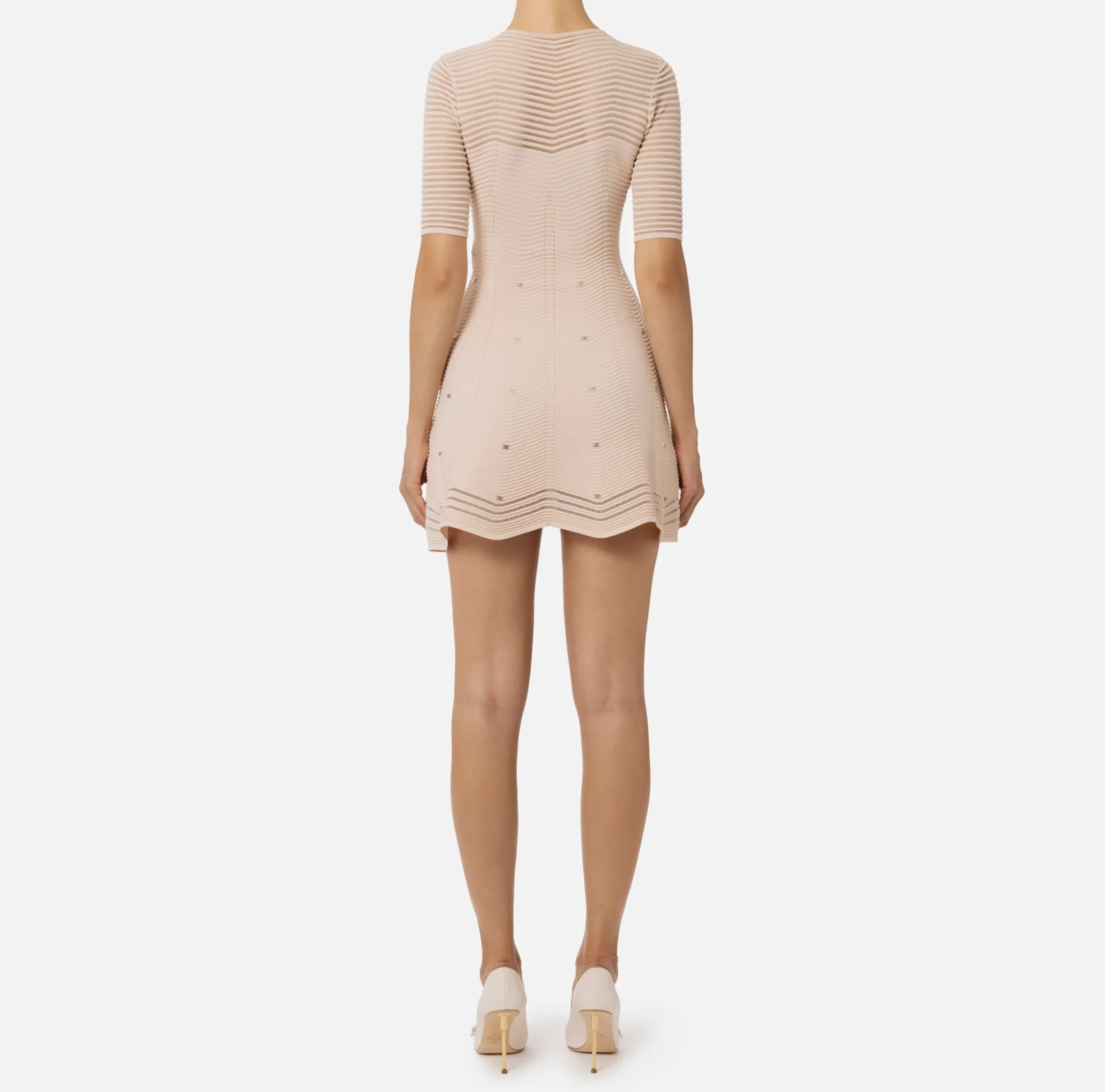 Mini Abiti|Abiti In Maglia|Elisabetta Franchi Miniabito in viscosa motivo chevron con borchie RosaCipria
