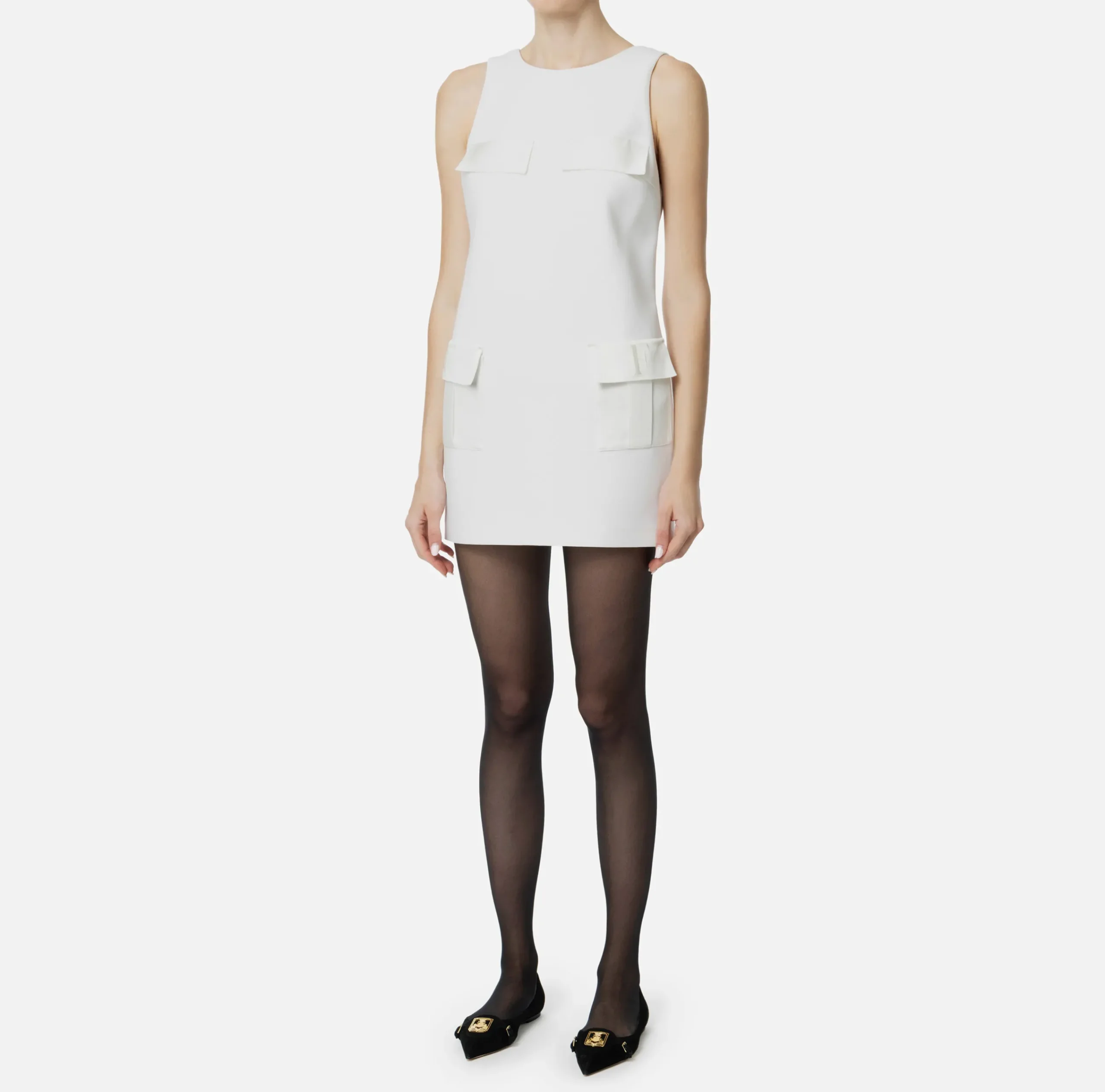 Mini Abiti|Abiti|Elisabetta Franchi Miniabito boxy in crêpe con tasche Avorio