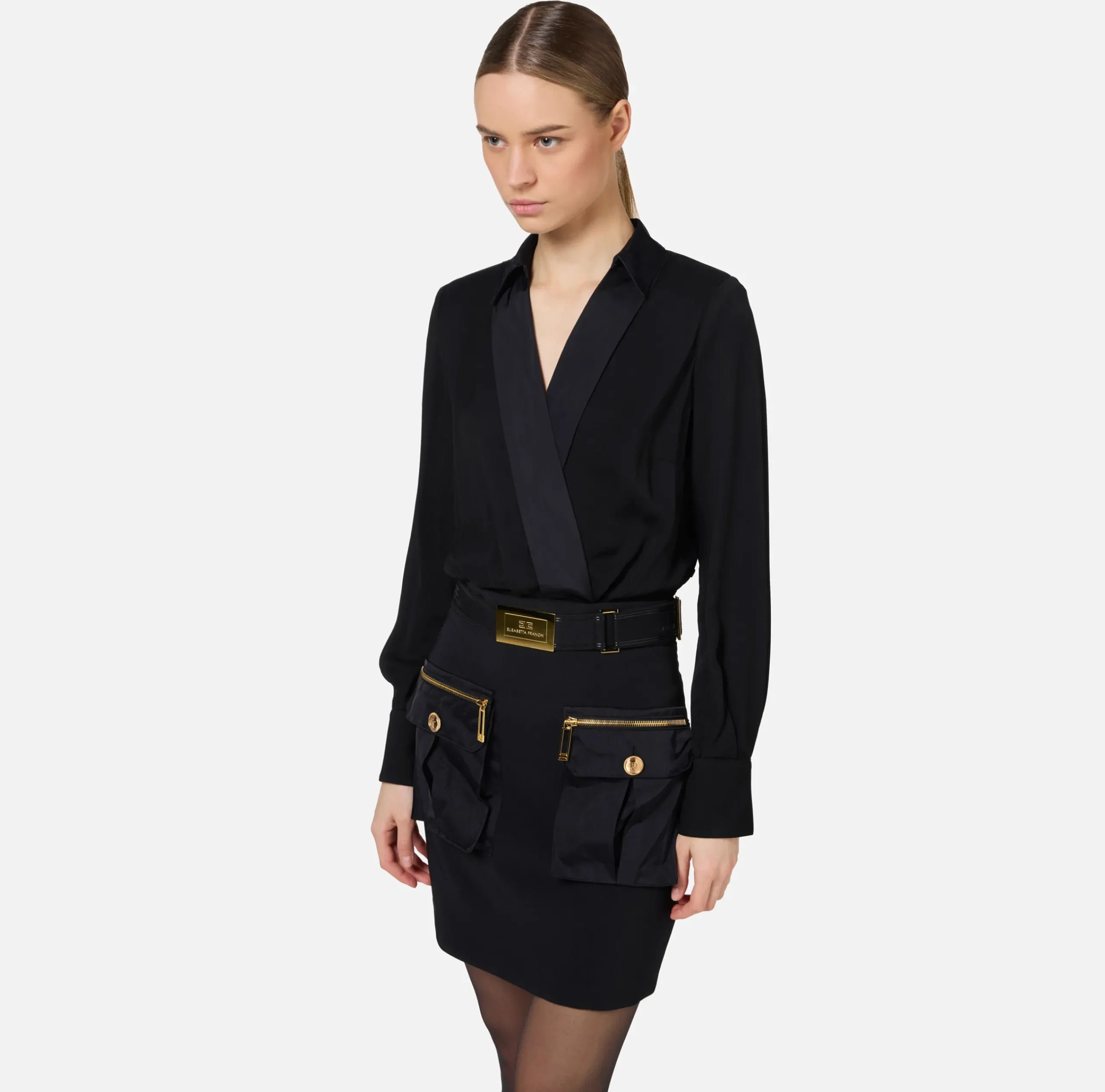 Be the first to review “Mini Abiti|Abiti|Elisabetta Franchi Miniabito con camicia incrociata e gonna con tasche Nero” Annulla risposta