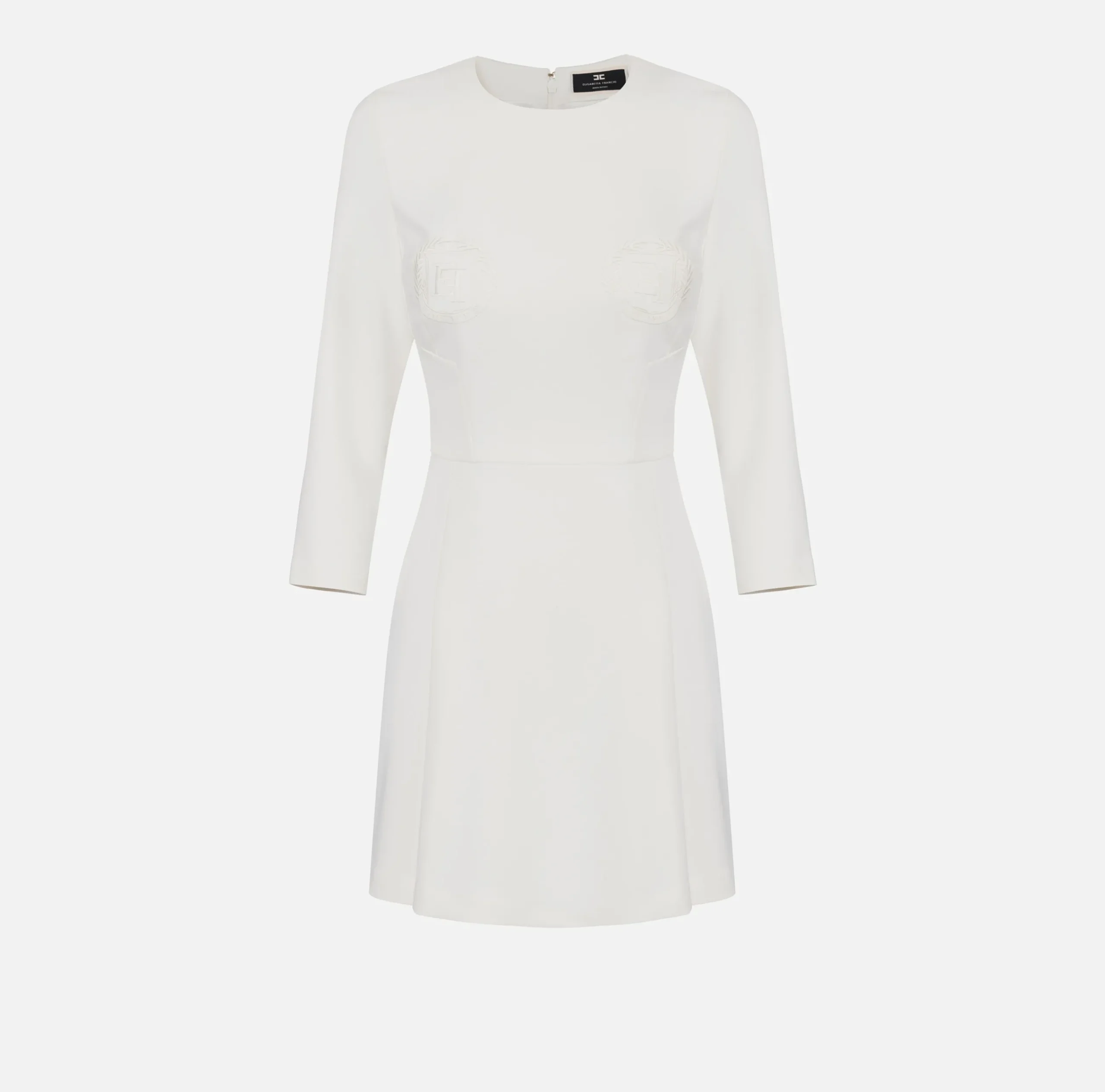 Mini Abiti|Abiti|Elisabetta Franchi Miniabito in crêpe con stemma ricamato Avorio