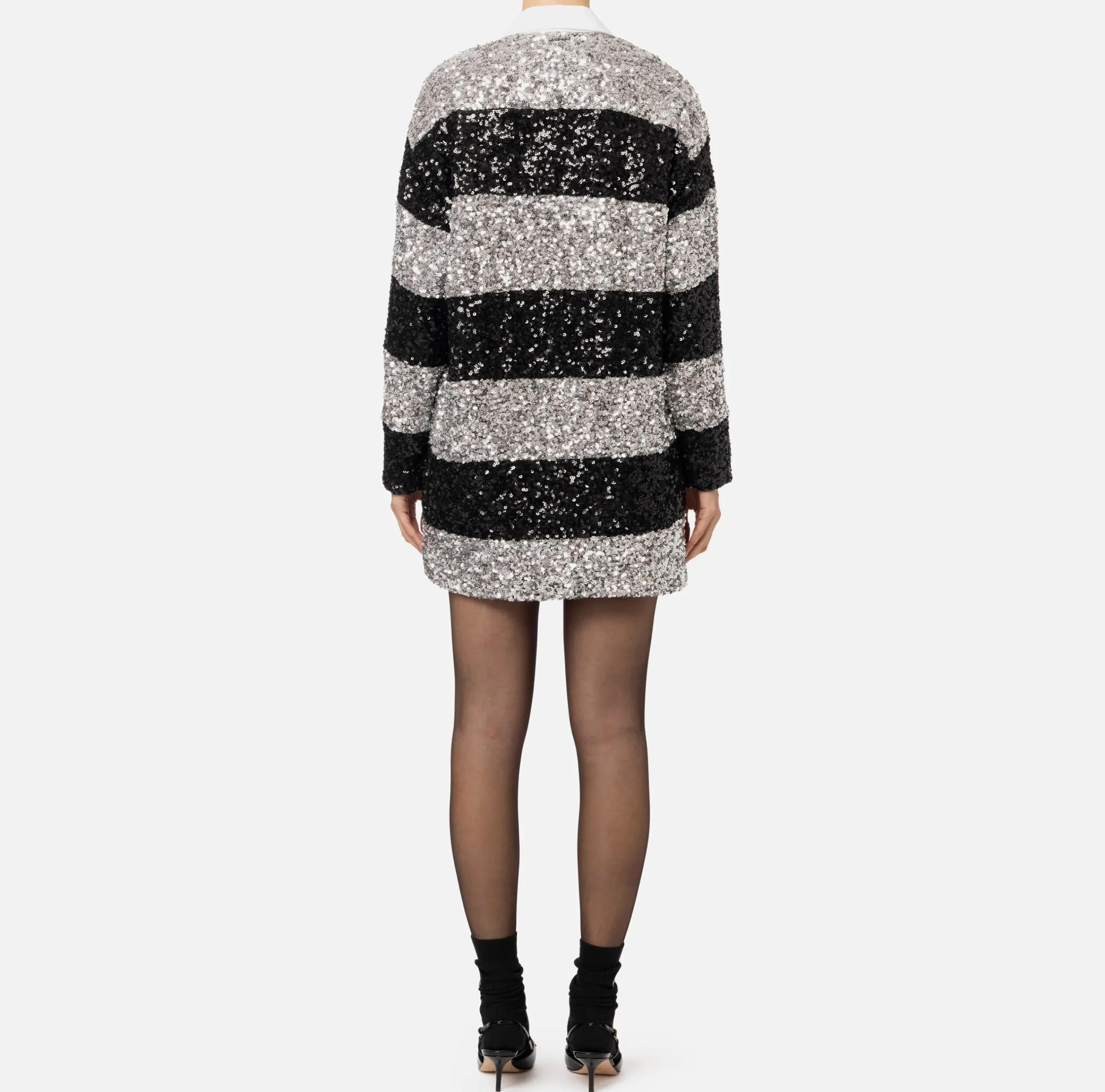 Mini Abiti|Abiti|Elisabetta Franchi Miniabito in paillettes a righe con colletto a camicia Argento/Nero