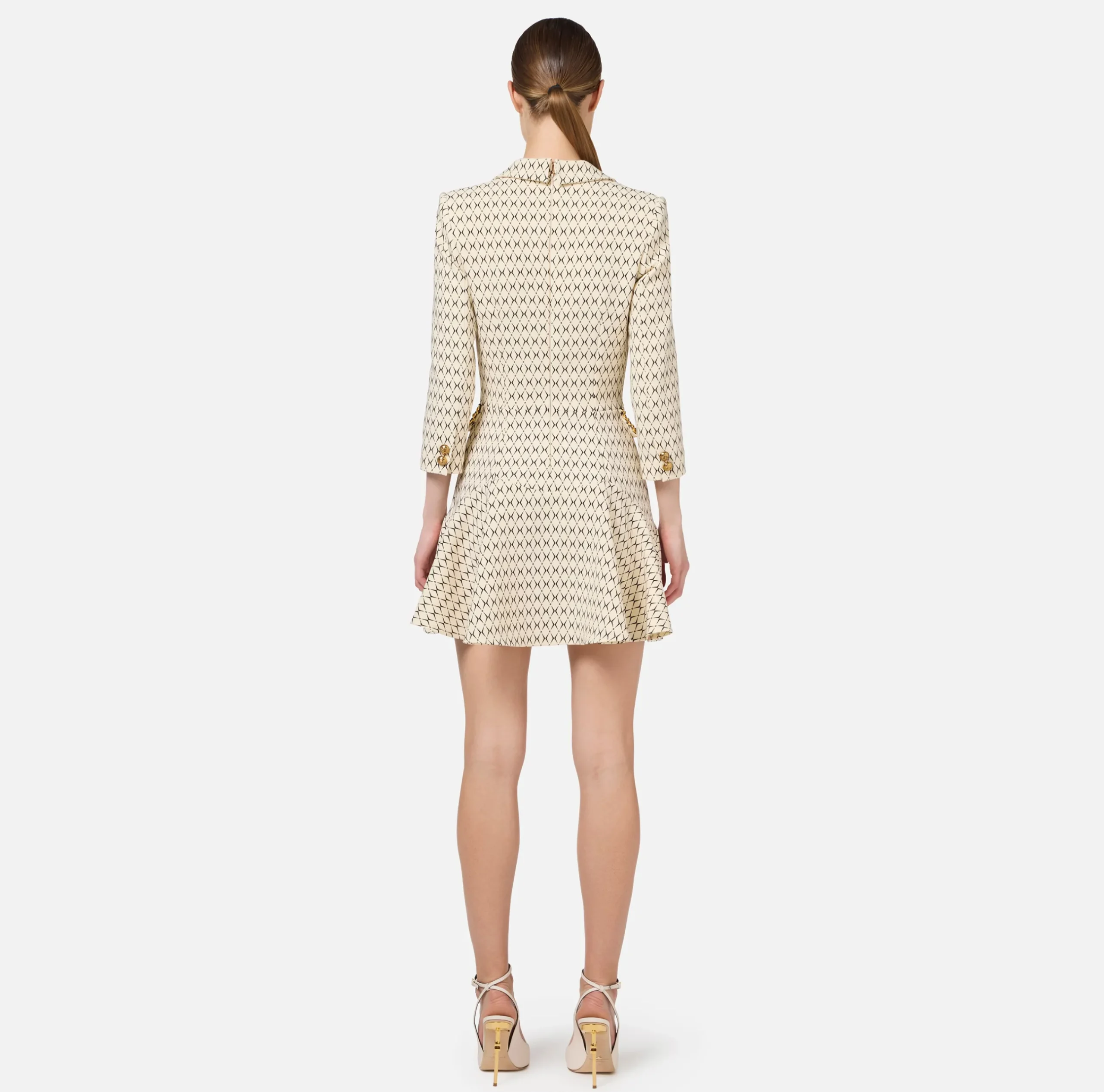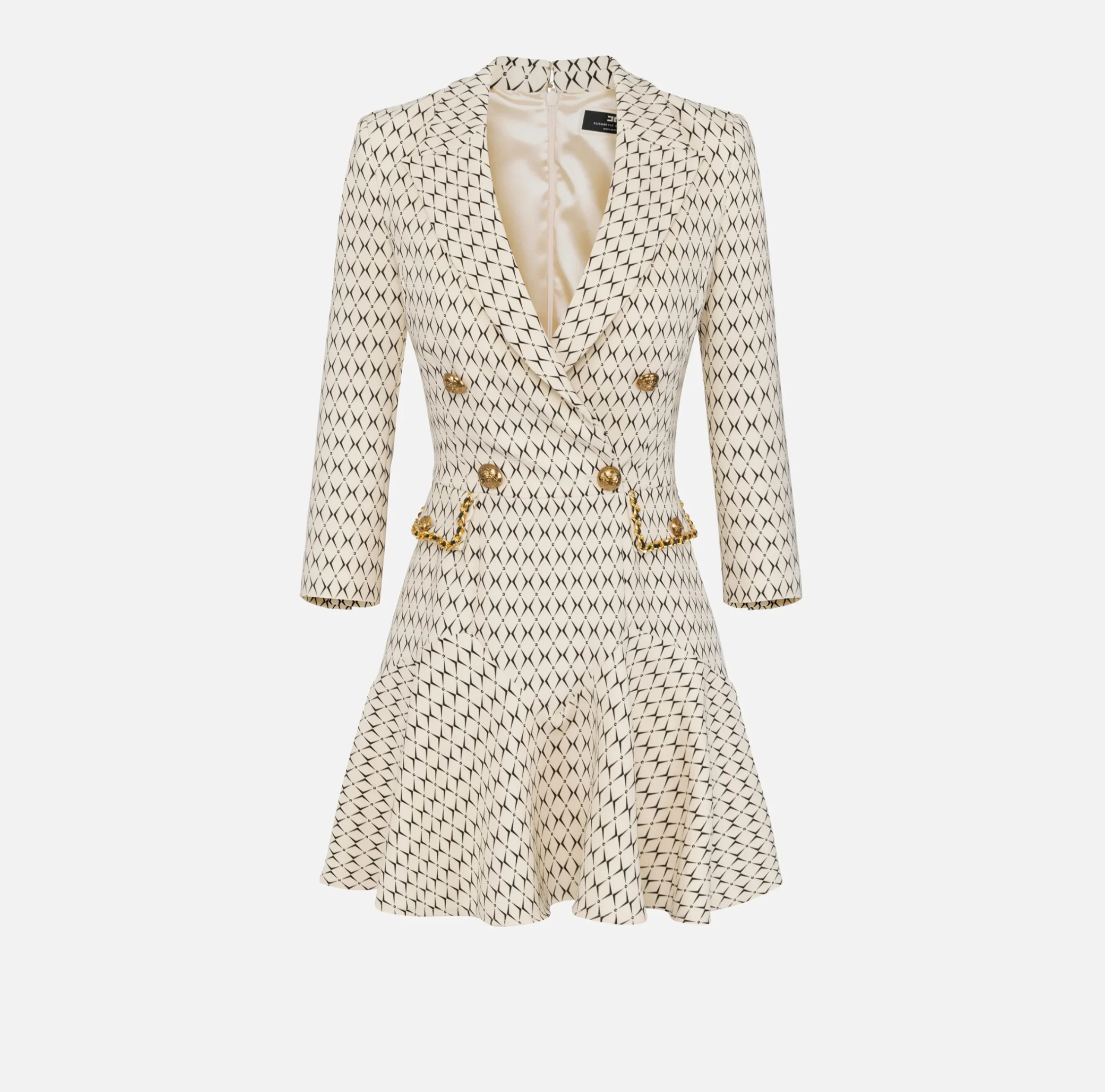 Mini Abiti|Robes Manteaux|Elisabetta Franchi Robe manteau in crêpe stretch stampa rombo con catena Burro/Nero