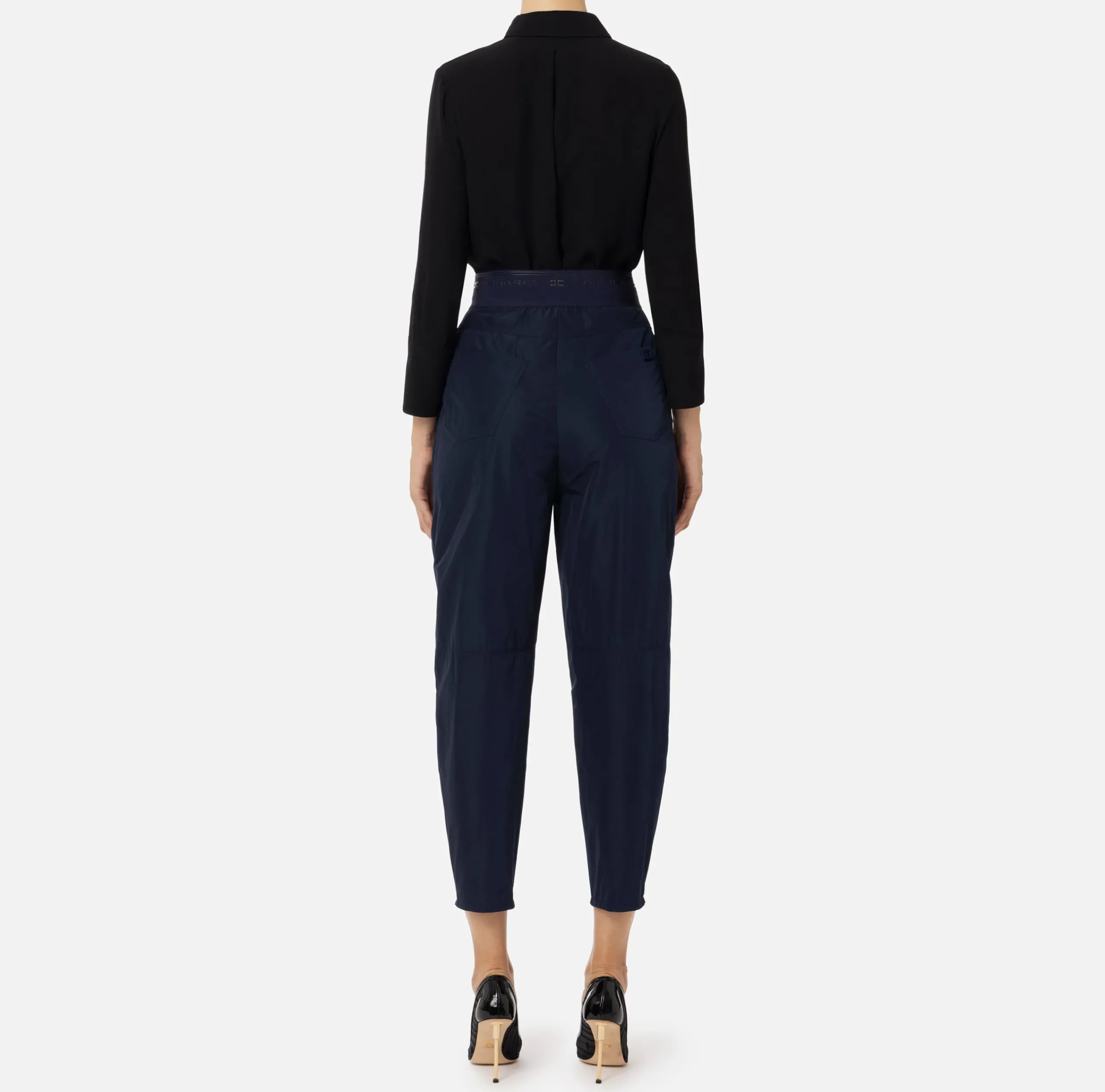 Pantaloni E Shorts|Elisabetta Franchi Pantalone boyfriend in nylon tecnico con elastico logato Navy