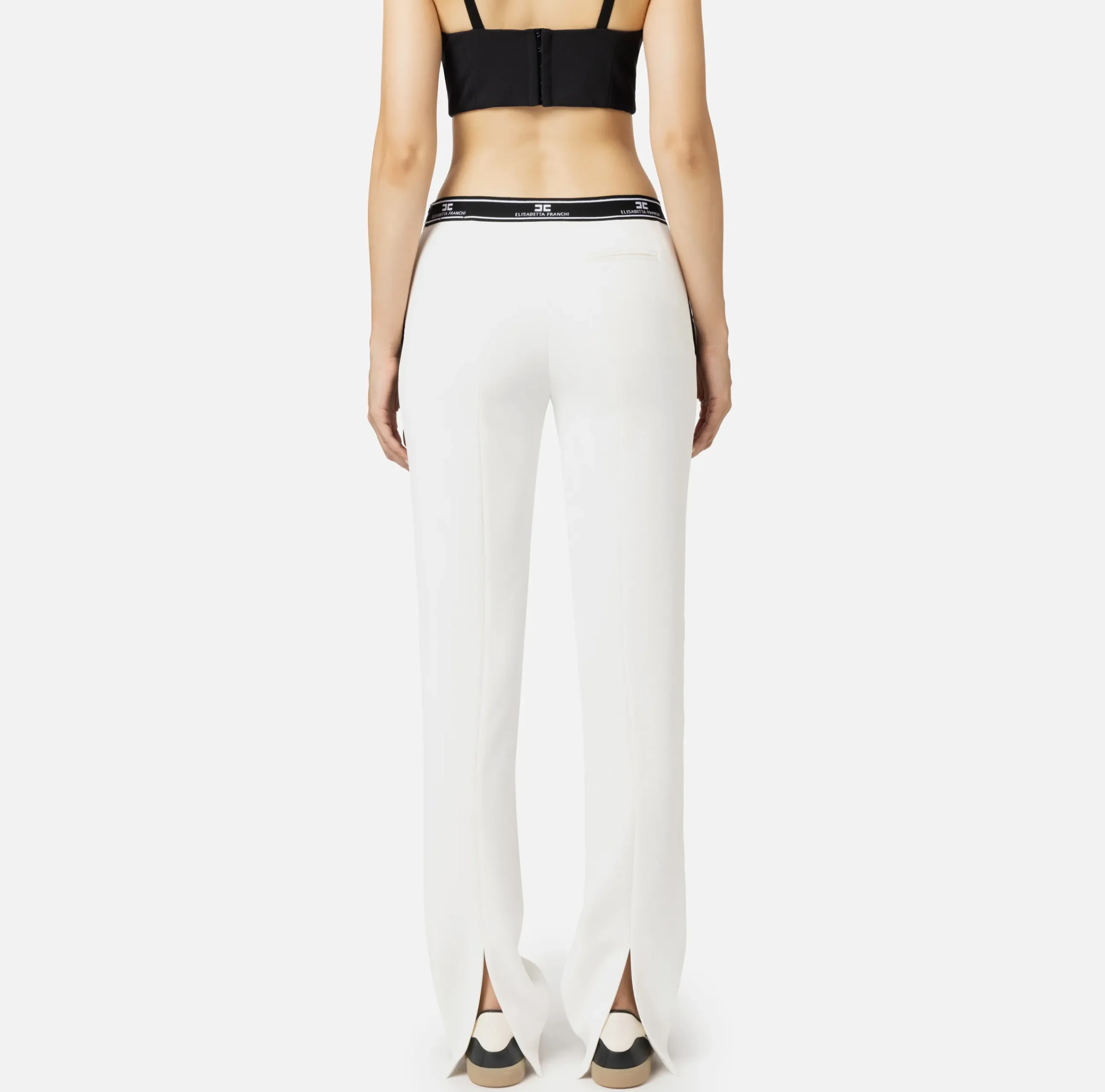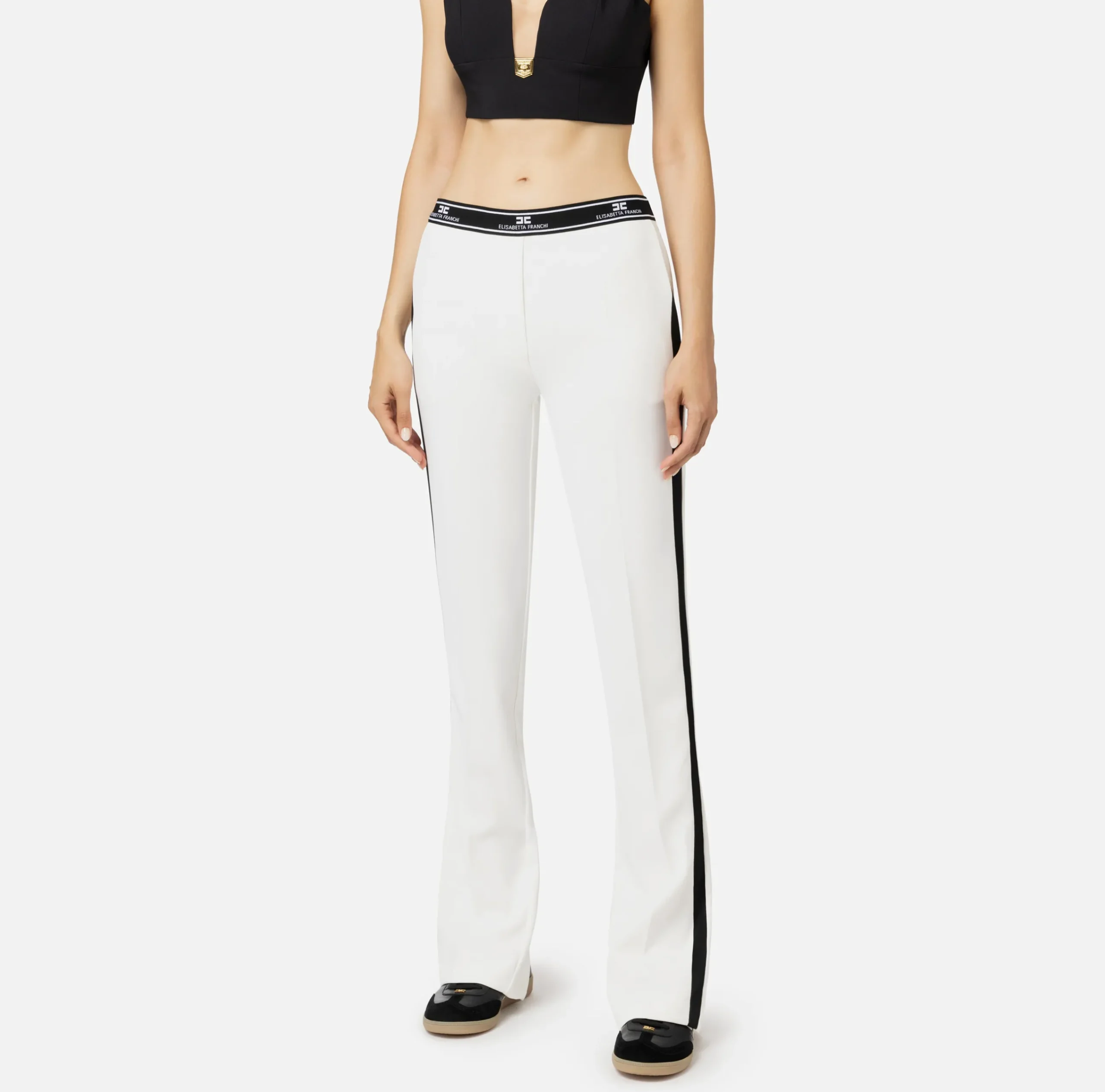 Pantaloni E Shorts|Elisabetta Franchi Pantalone dritto in crêpe con banda laterale Avorio