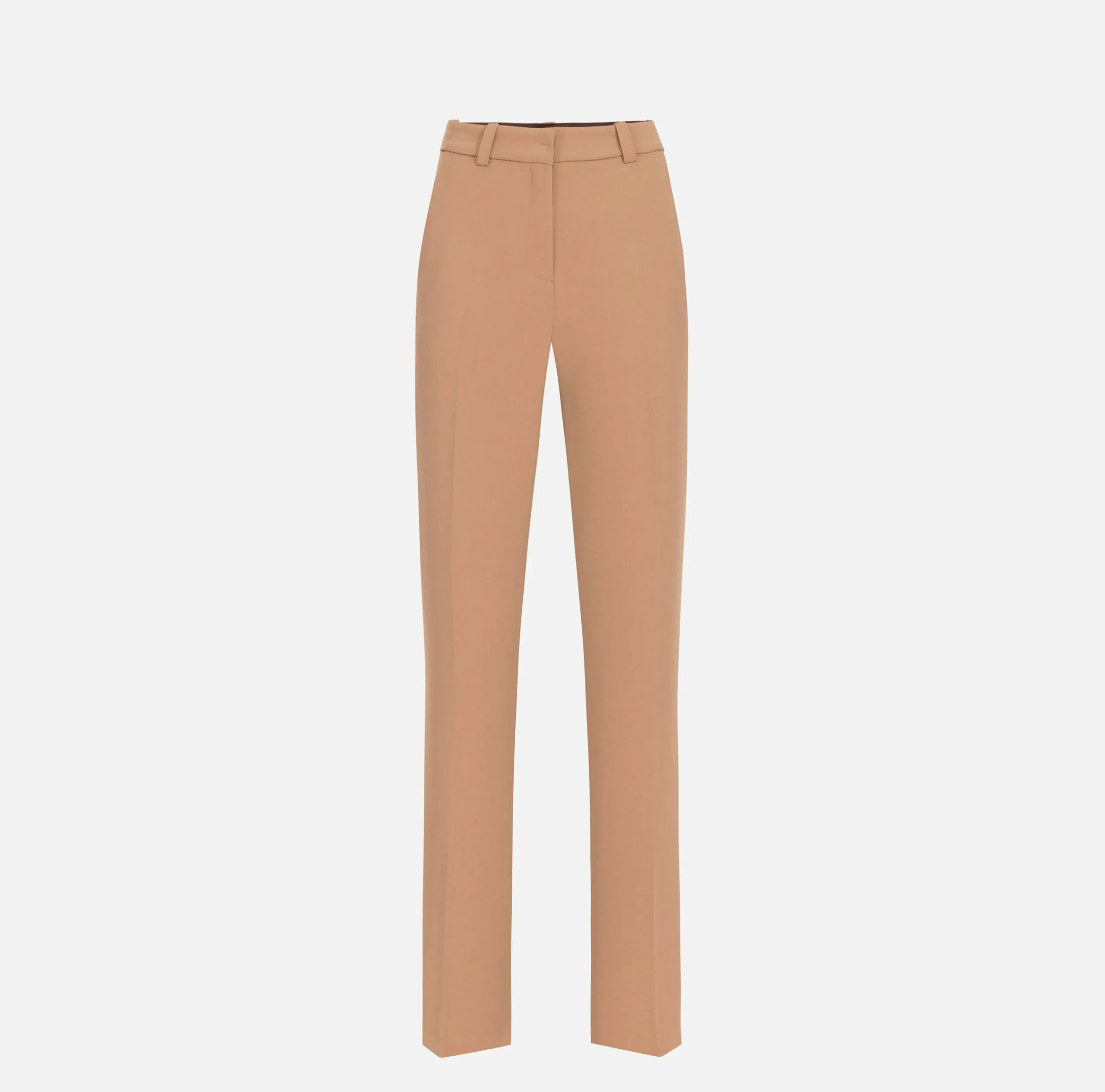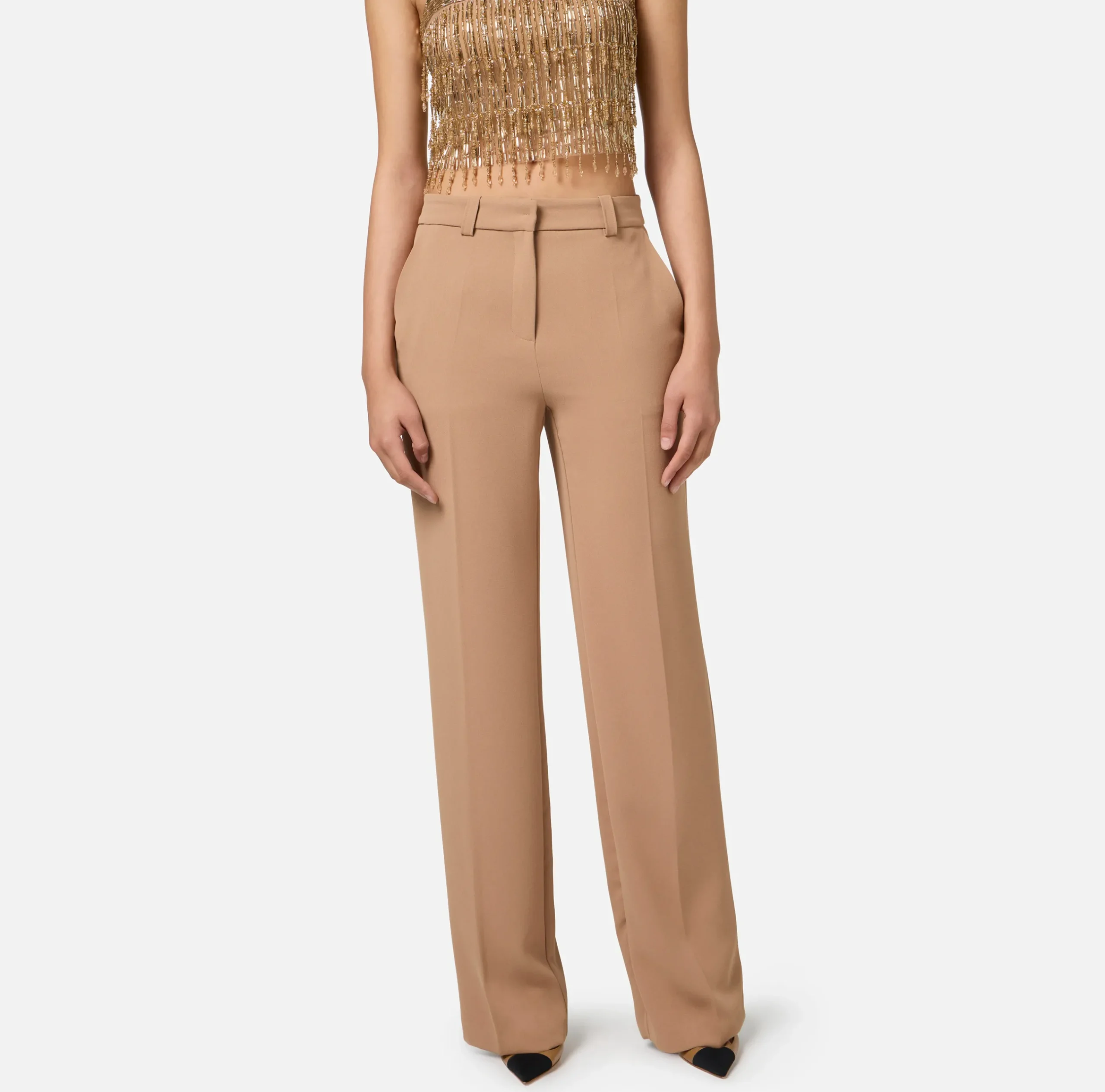 Pantaloni E Shorts|Elisabetta Franchi Pantalone dritto in crêpe con ricamo stemma Camel
