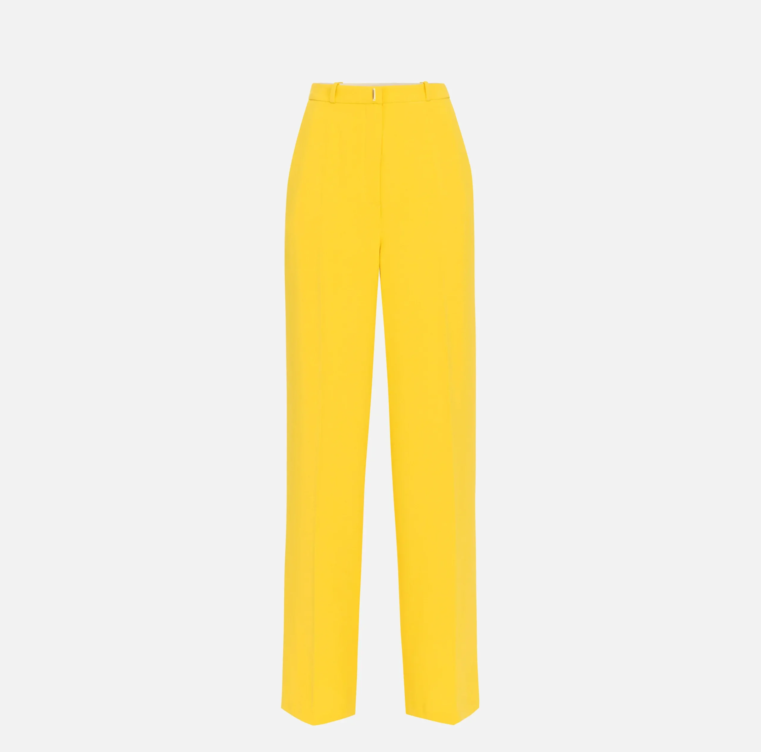 Pantalone dritto in crêpe fermo leggero con tasche alla francese e tasche posteriori a filetto. È caratterizzato da fascione con placca logo in metallo dorato.
