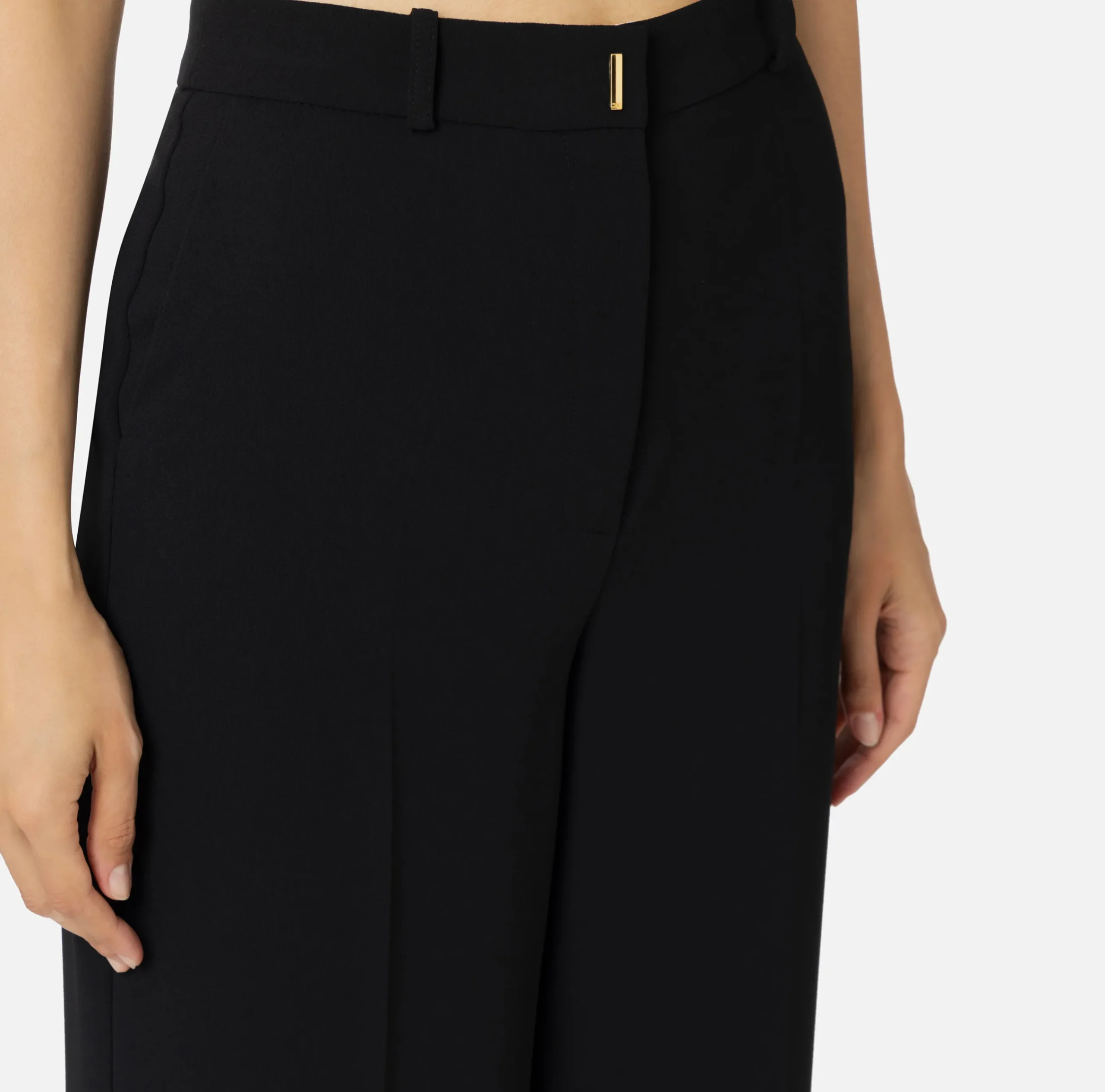 Pantaloni E Shorts|Elisabetta Franchi Pantalone dritto in crêpe fermo con placca logo Nero