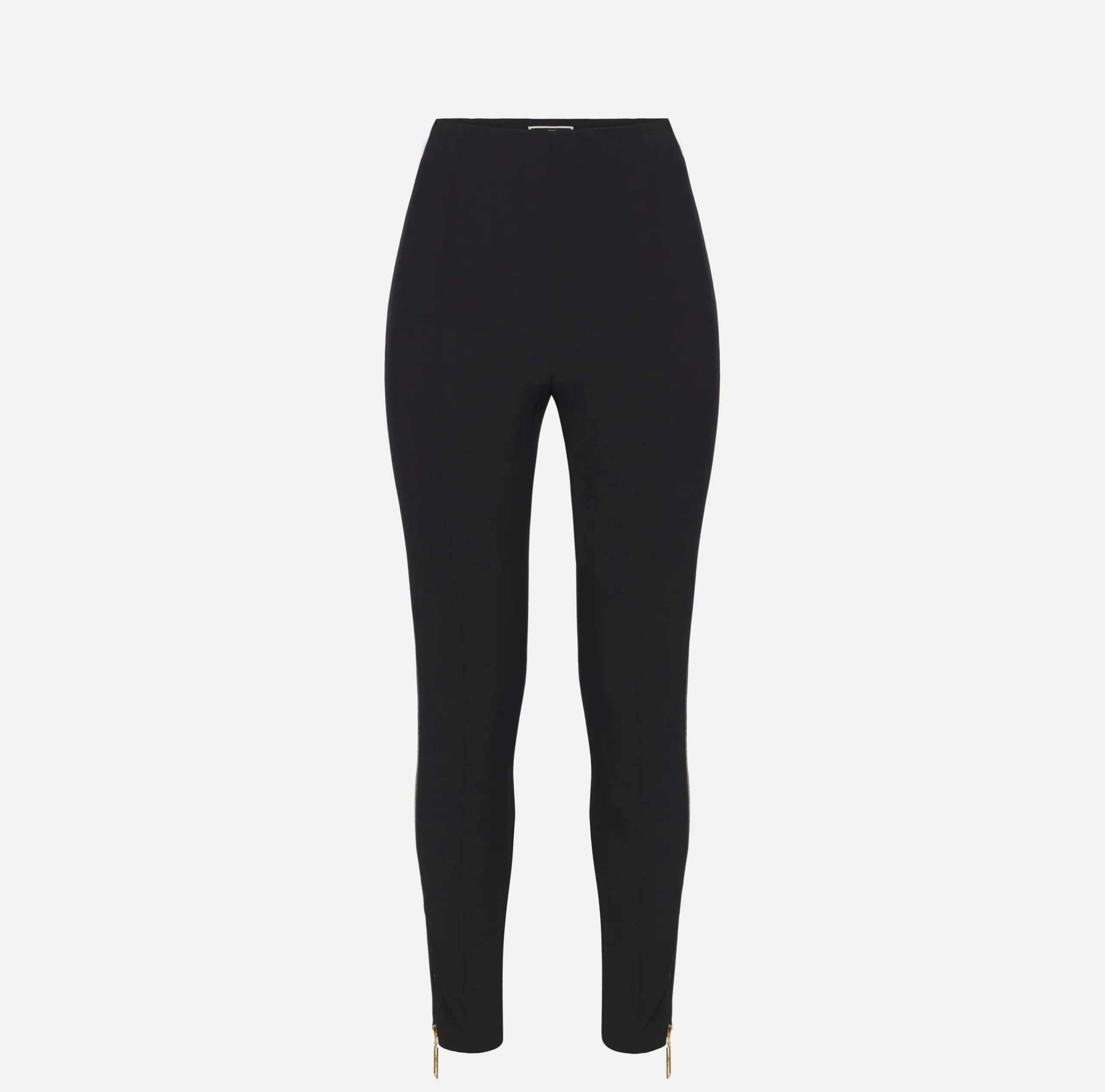 Pantalone dritto in doppio crêpe stretch. È caratterizzato da motivo di zip con tiretto logato che segue tutta la lunghezza dei fianchi.