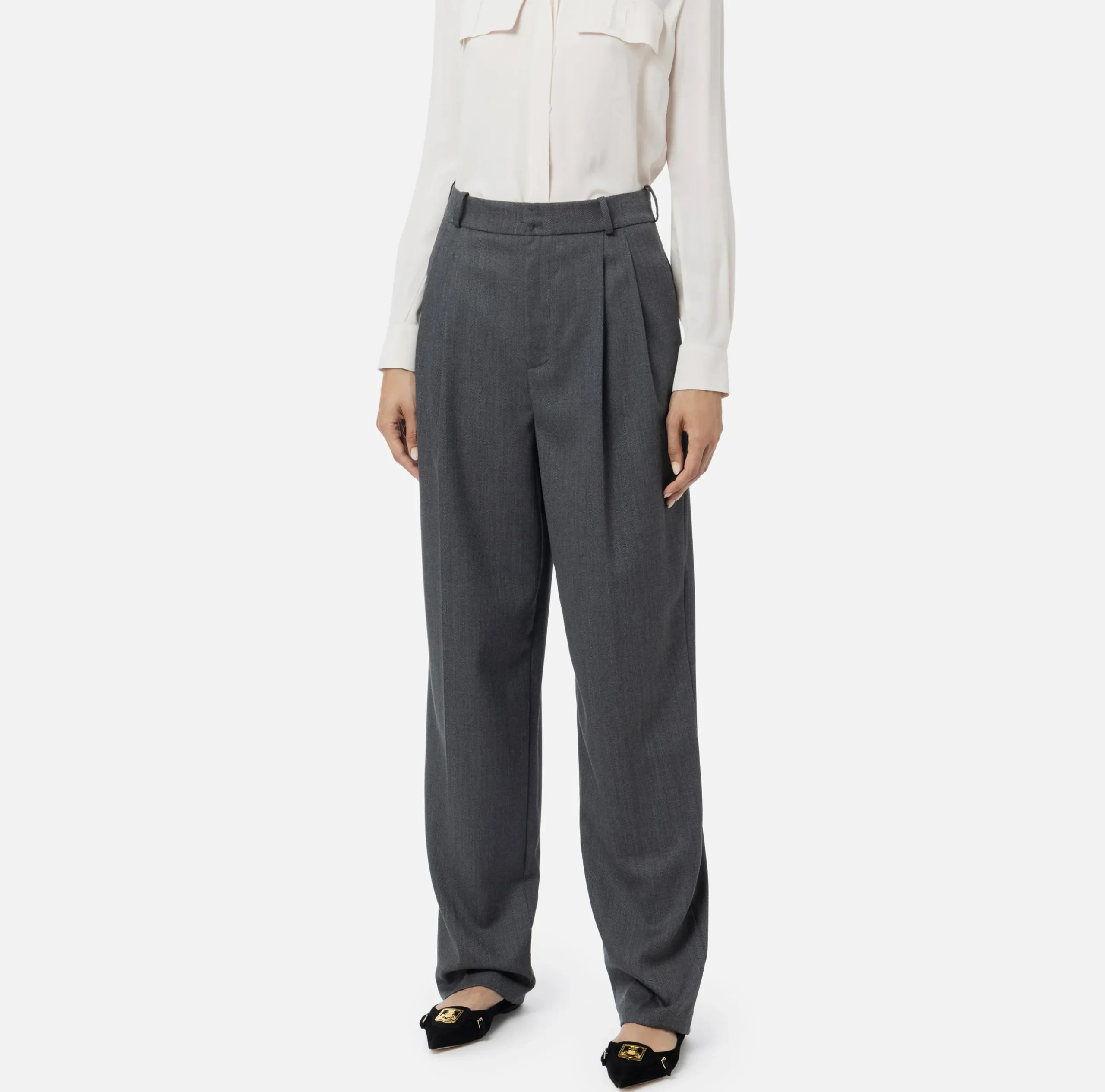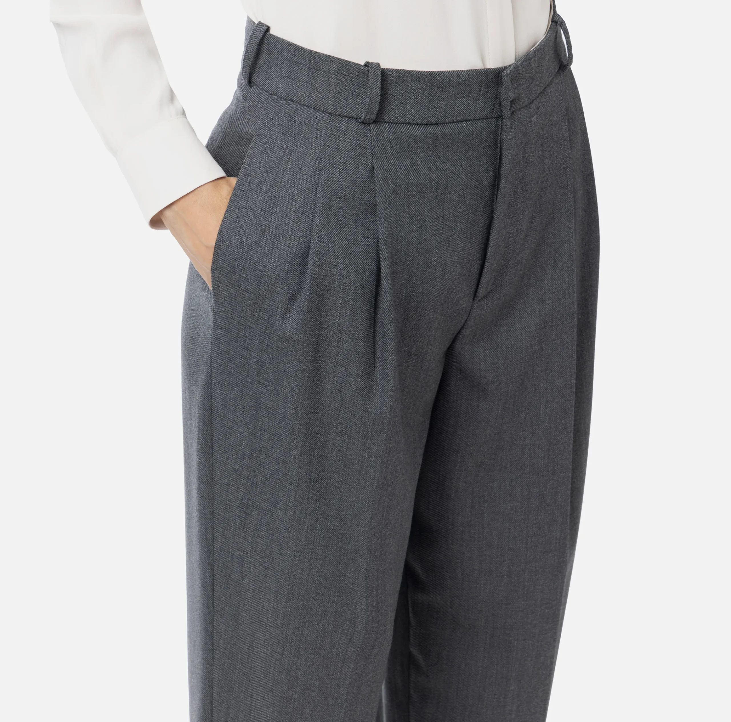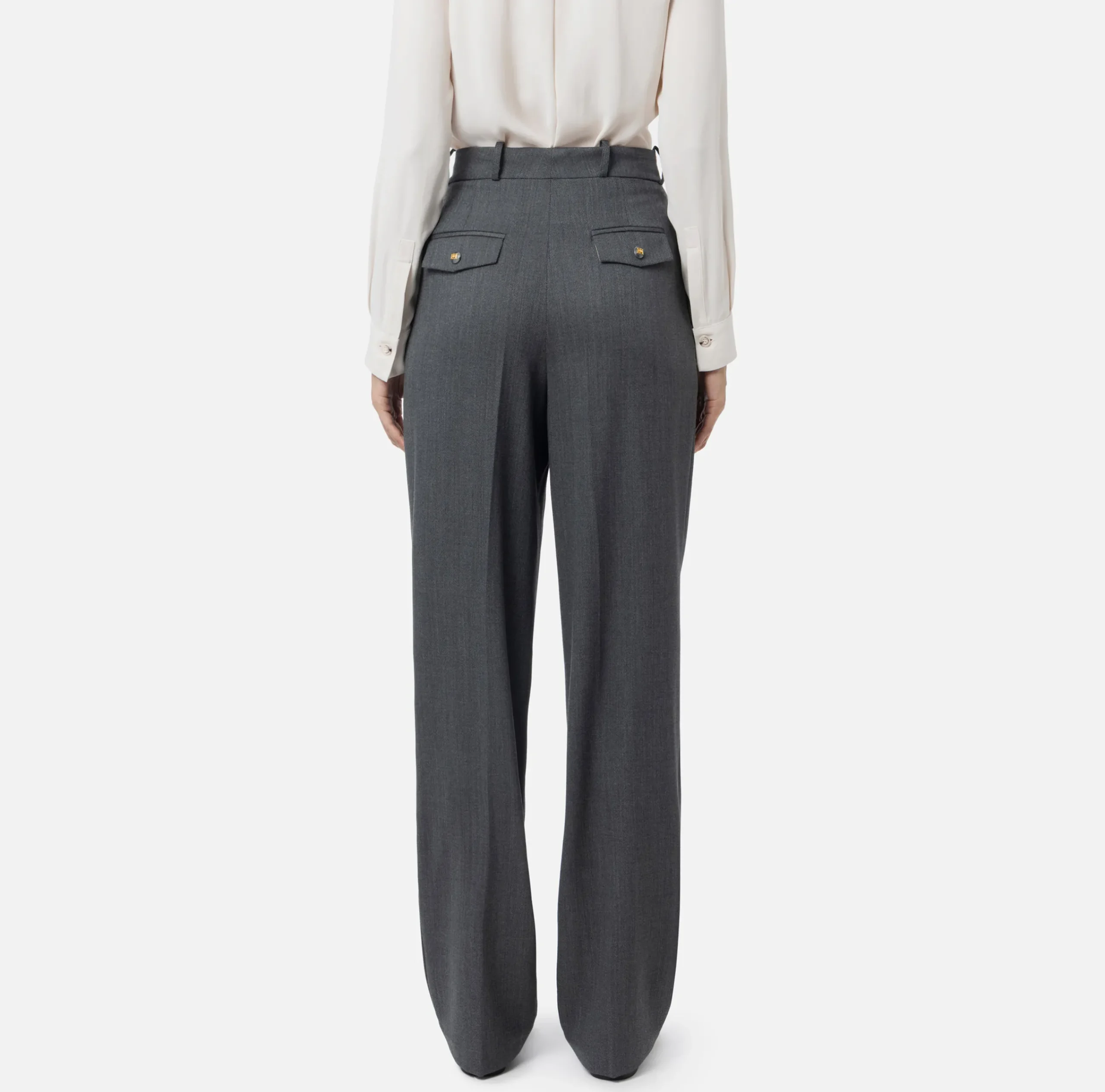 Pantaloni E Shorts|Elisabetta Franchi Pantalone gamba ampia con doppia pinces in fresco di lana stretch SteelMelange
