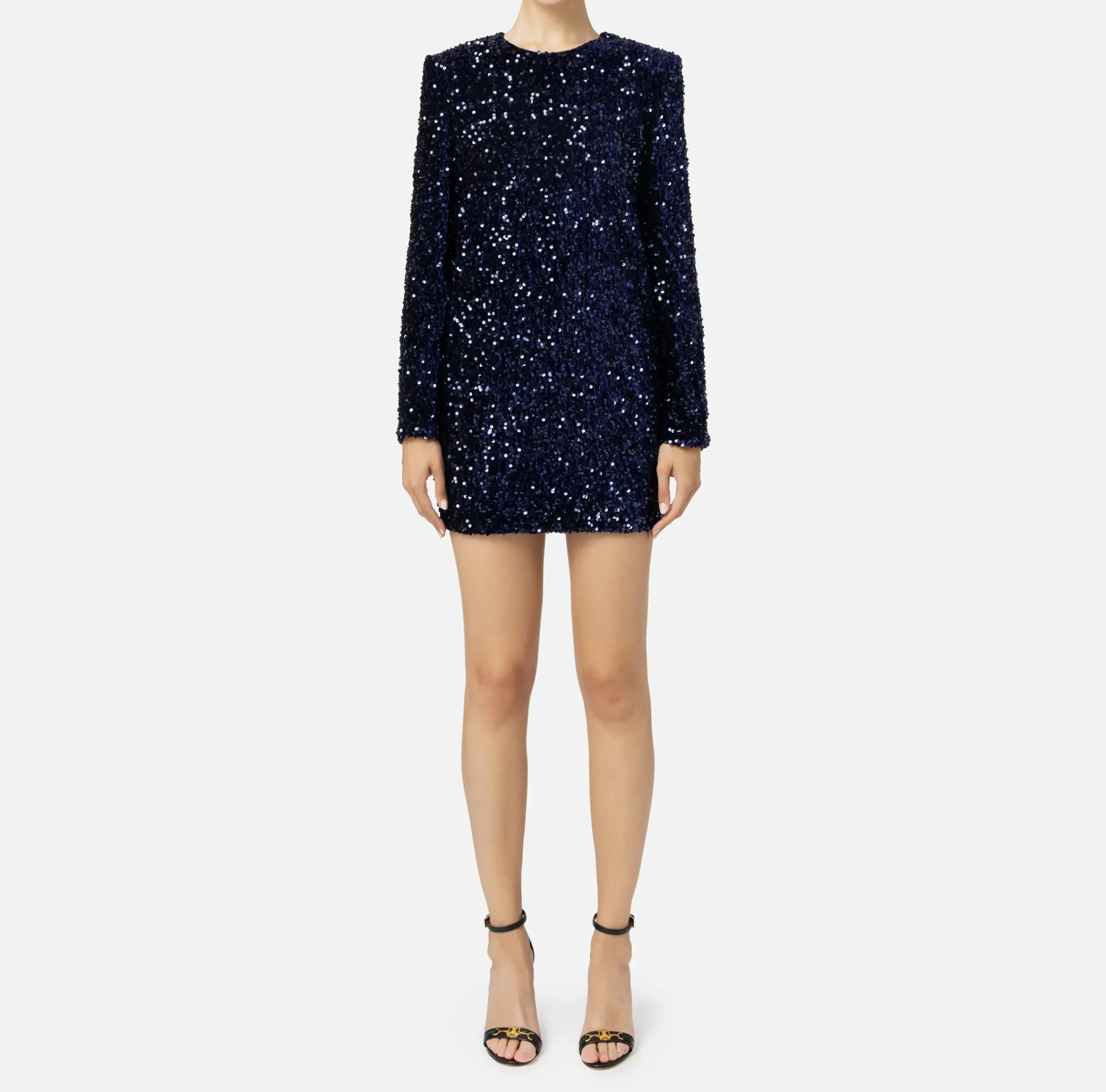 Red Carpet|Abiti Red Carpet|Elisabetta Franchi Miniabito boxy in ciniglia ricamata con pailettes Navy