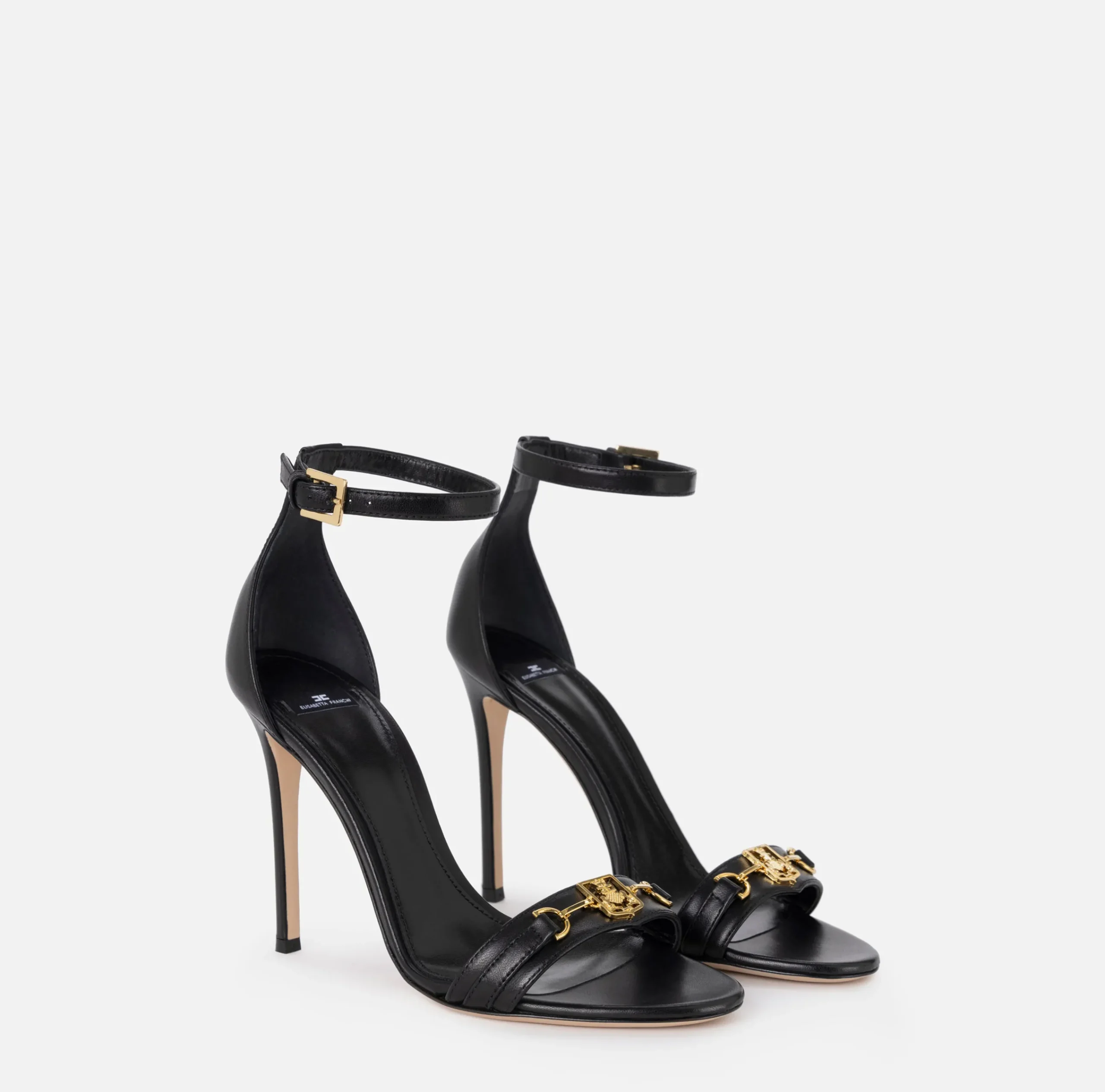 Sandali|Elisabetta Franchi Sandalo in nappa con morsetto scudetto Nero