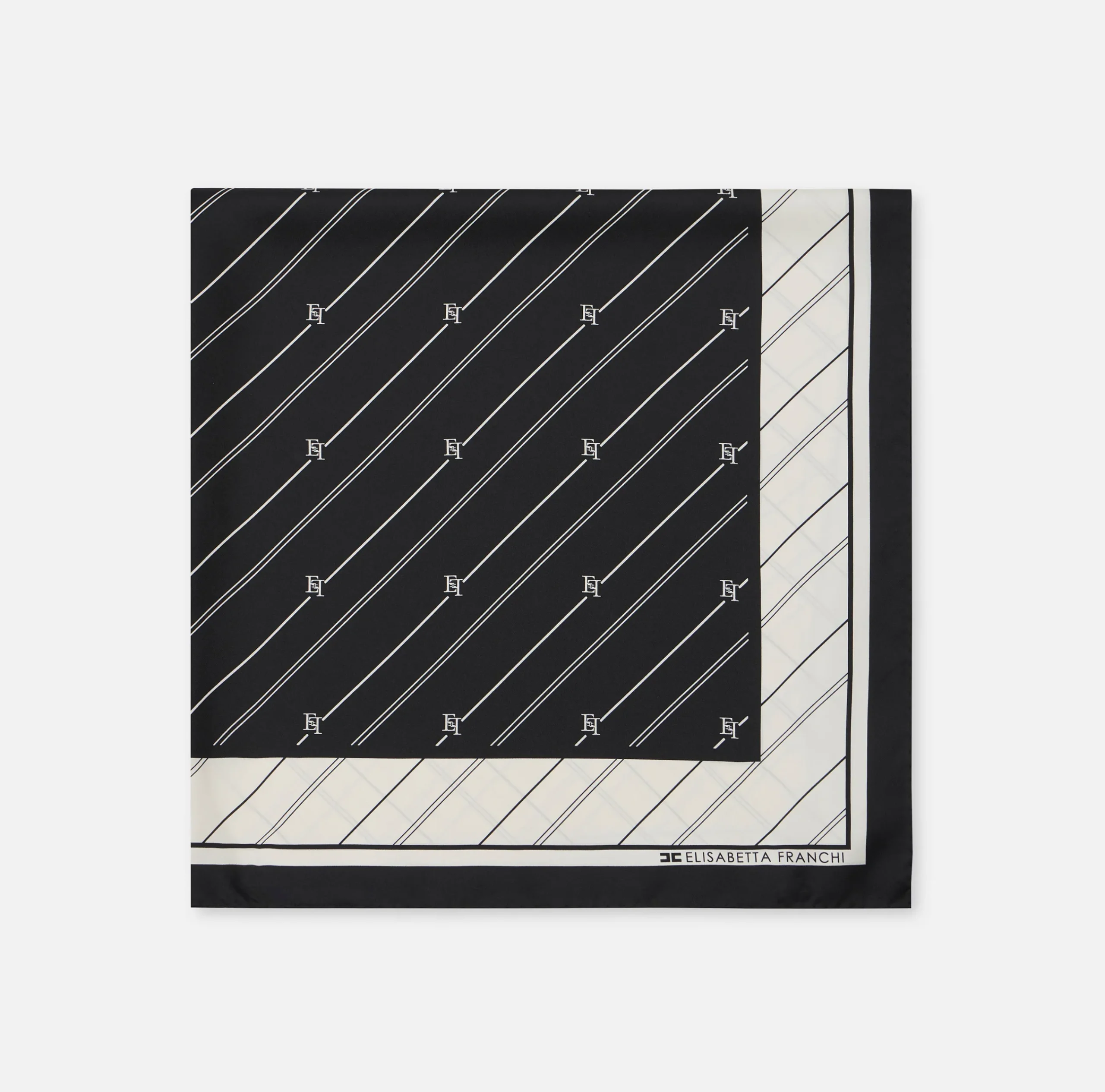 Sciarpe|Elisabetta Franchi Foulard in seta con pattern righe diagonali e logo Nero/Burro