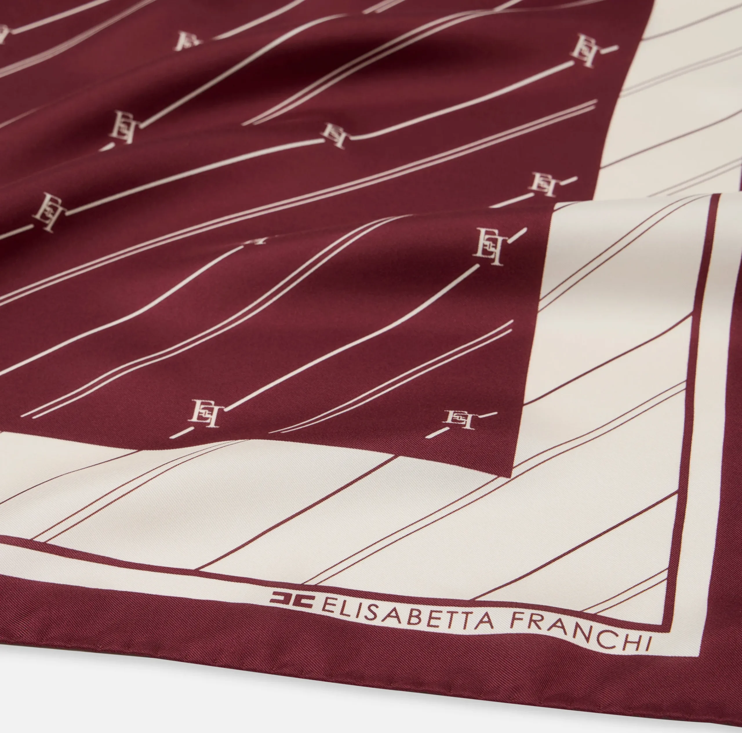Sciarpe|Elisabetta Franchi Foulard in seta con pattern righe diagonali e logo RougeNoir/Burro
