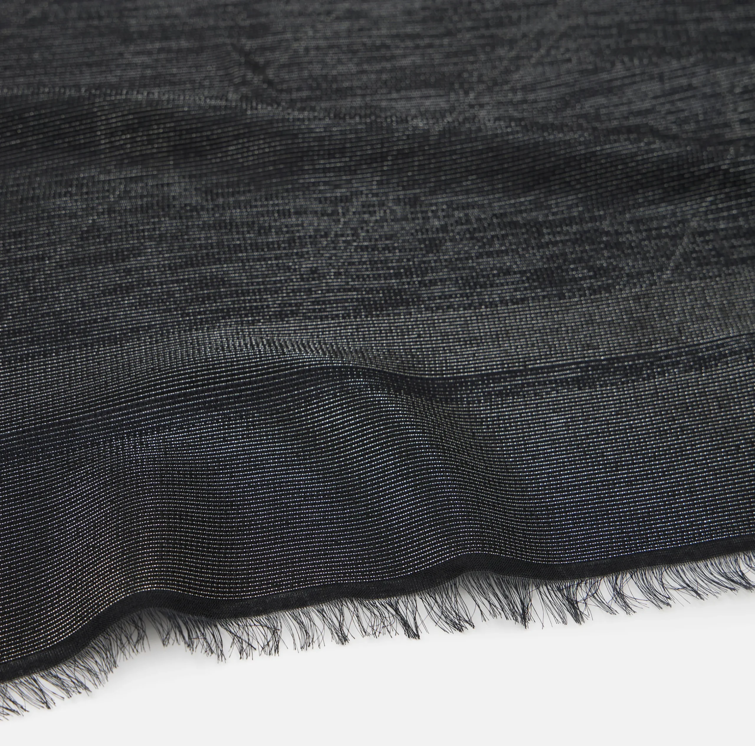 Pashmina in filo lurex con pattern righe diagonali e logo. È caratterizzata da cornice con bordo sfrangiato.