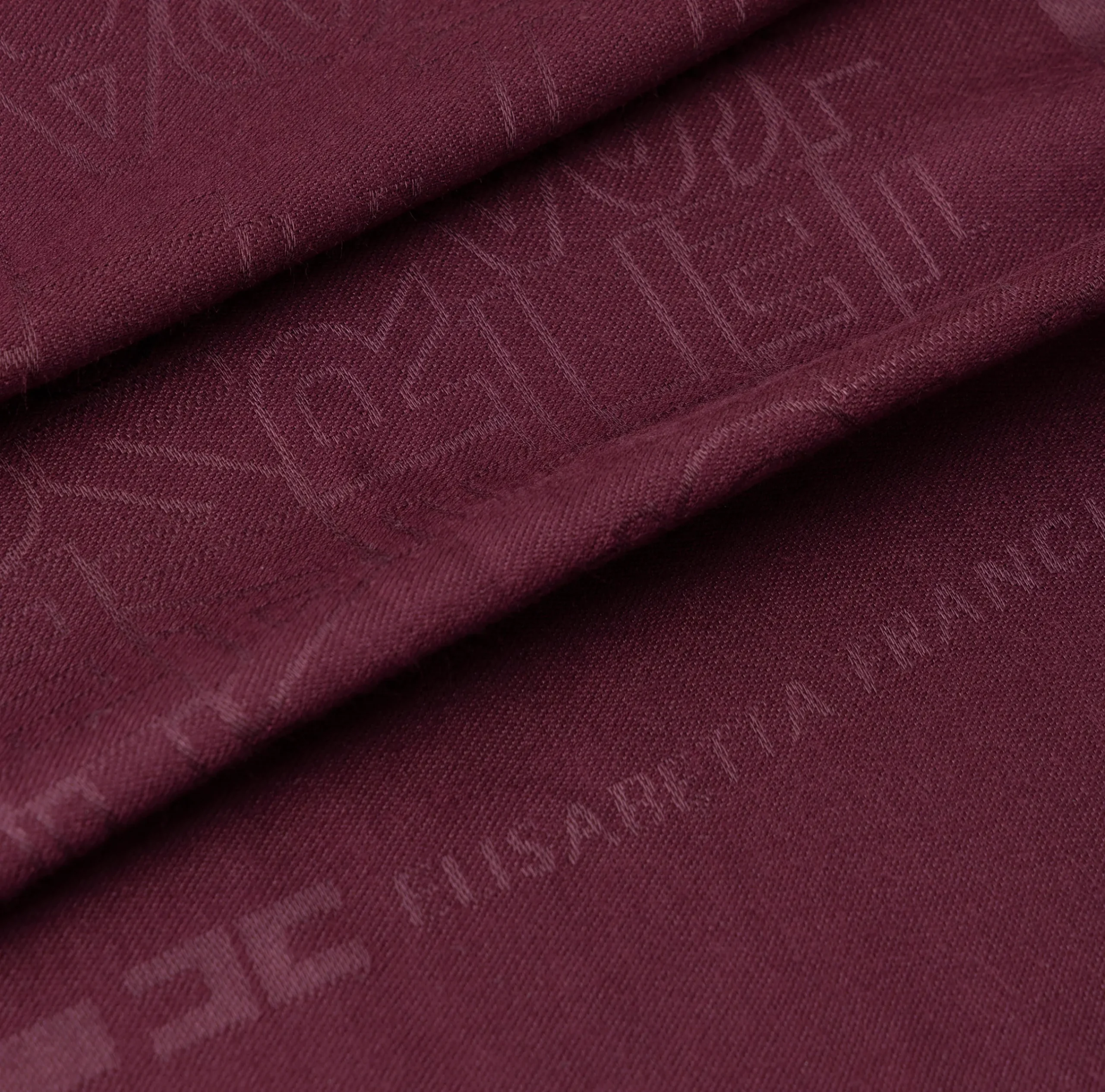 Pashmina in viscosa modal tinto pezza con lettering jacquard all-over e cornice con bordo sfrangiato.