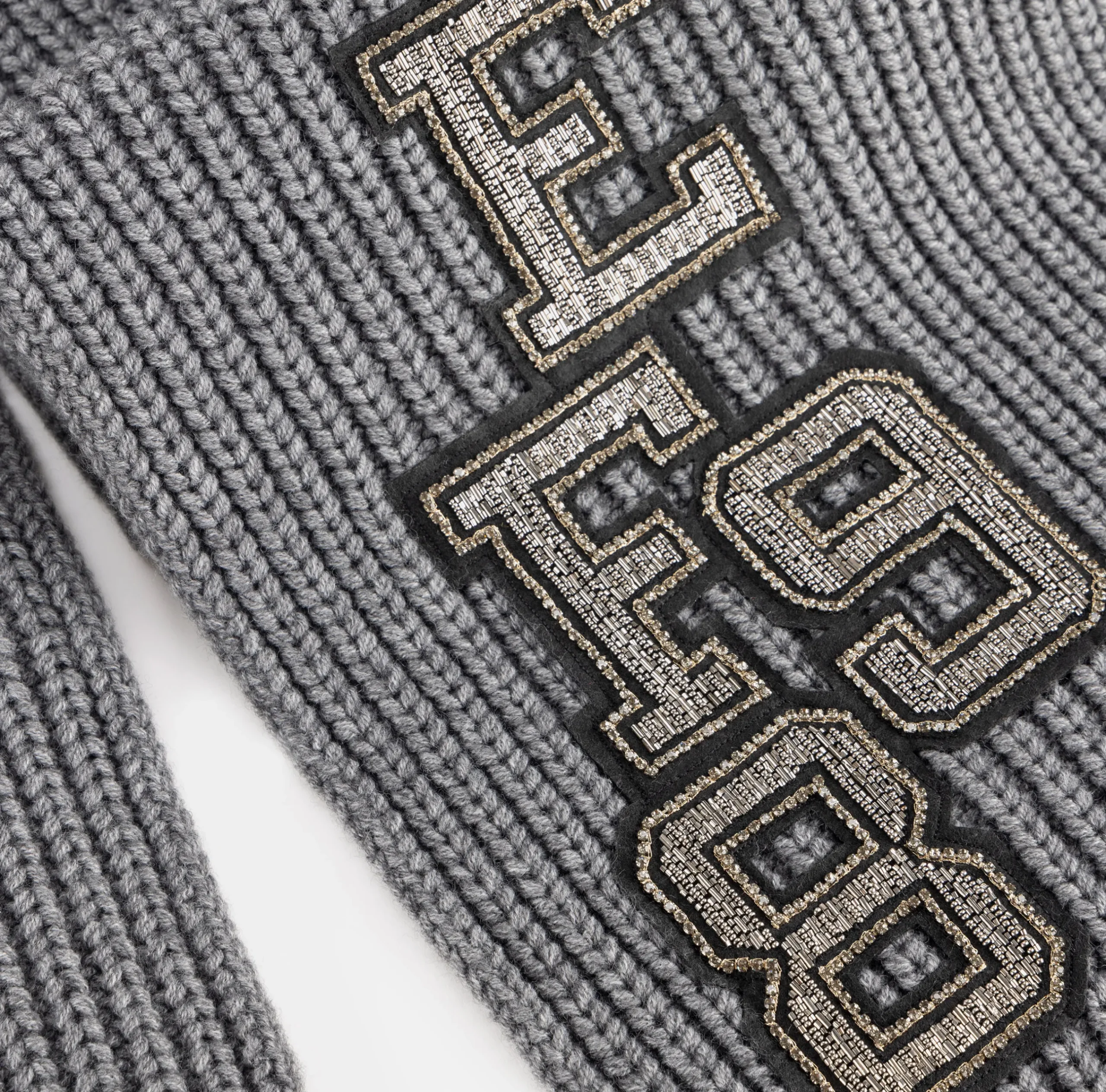 Sciarpe|Elisabetta Franchi Sciarpa in lana a coste con patch stile college SteelMelange