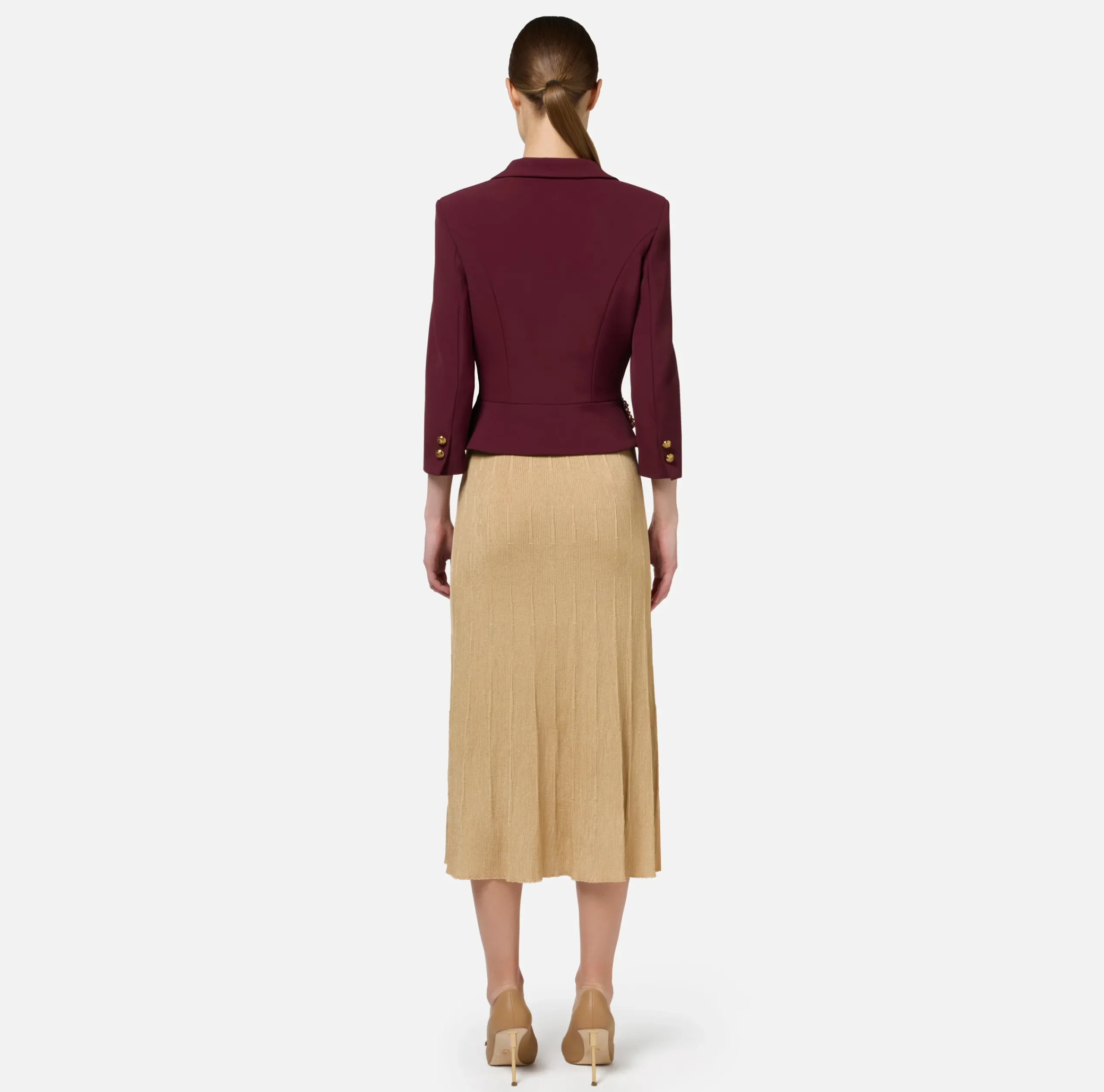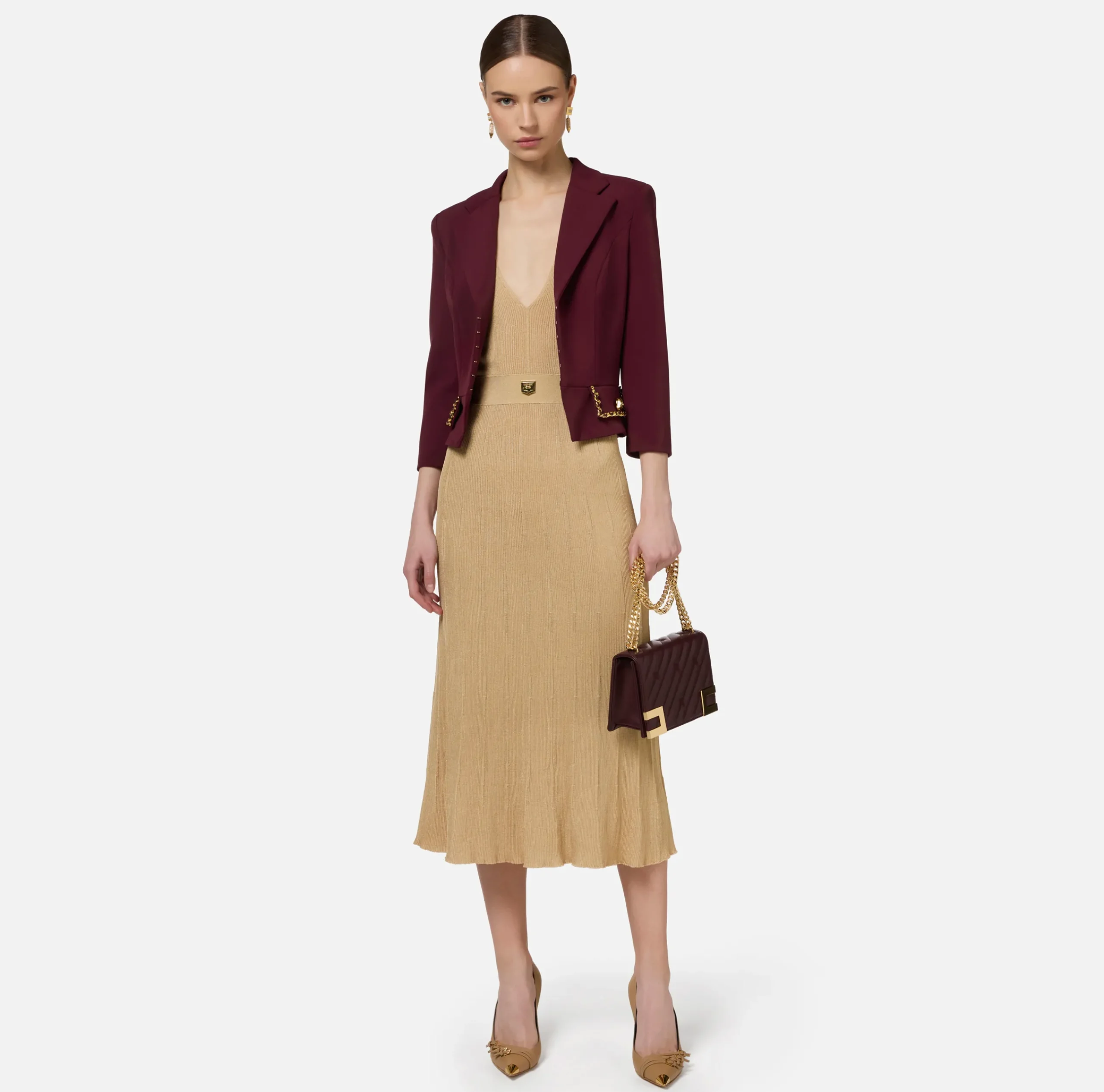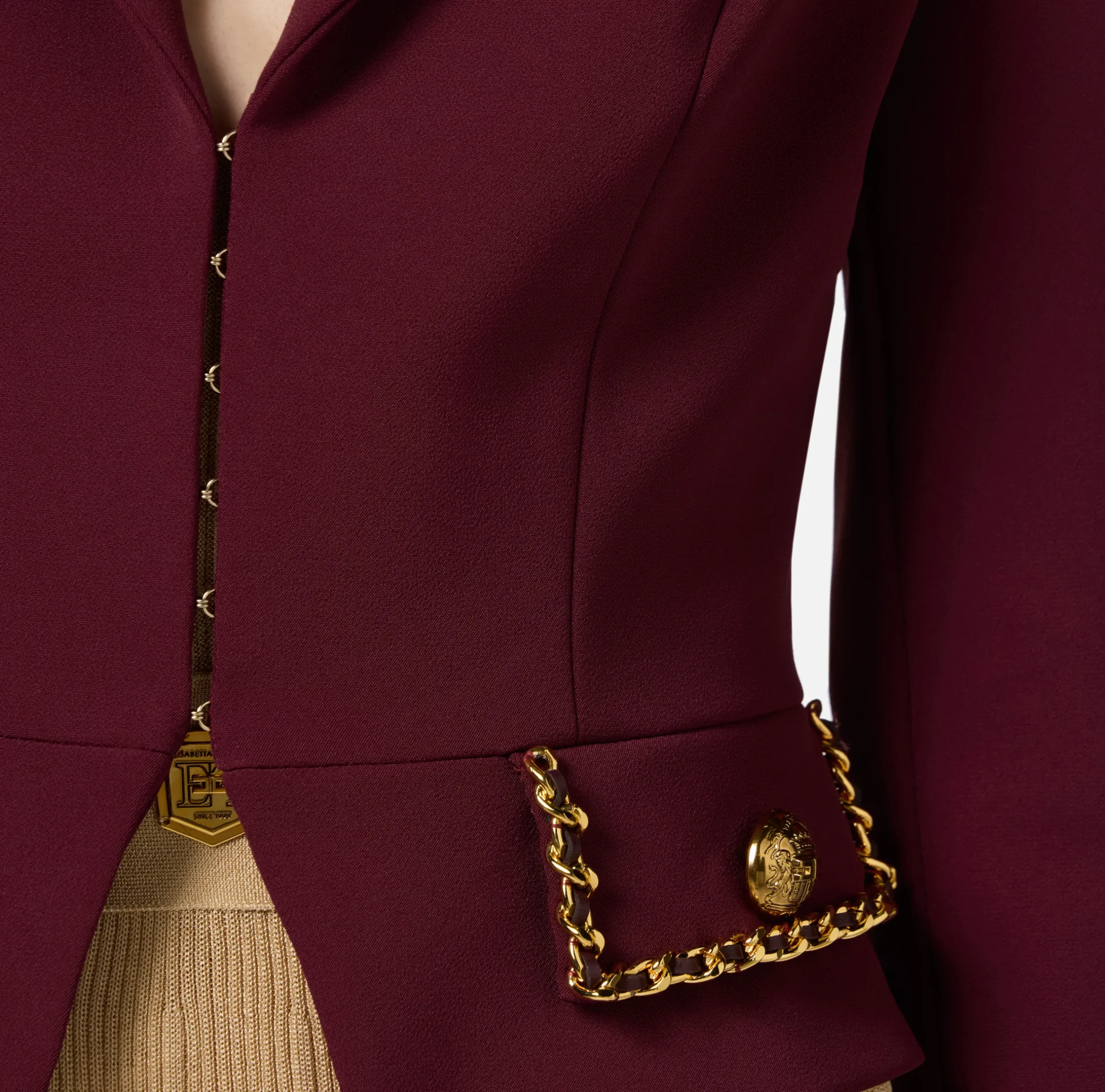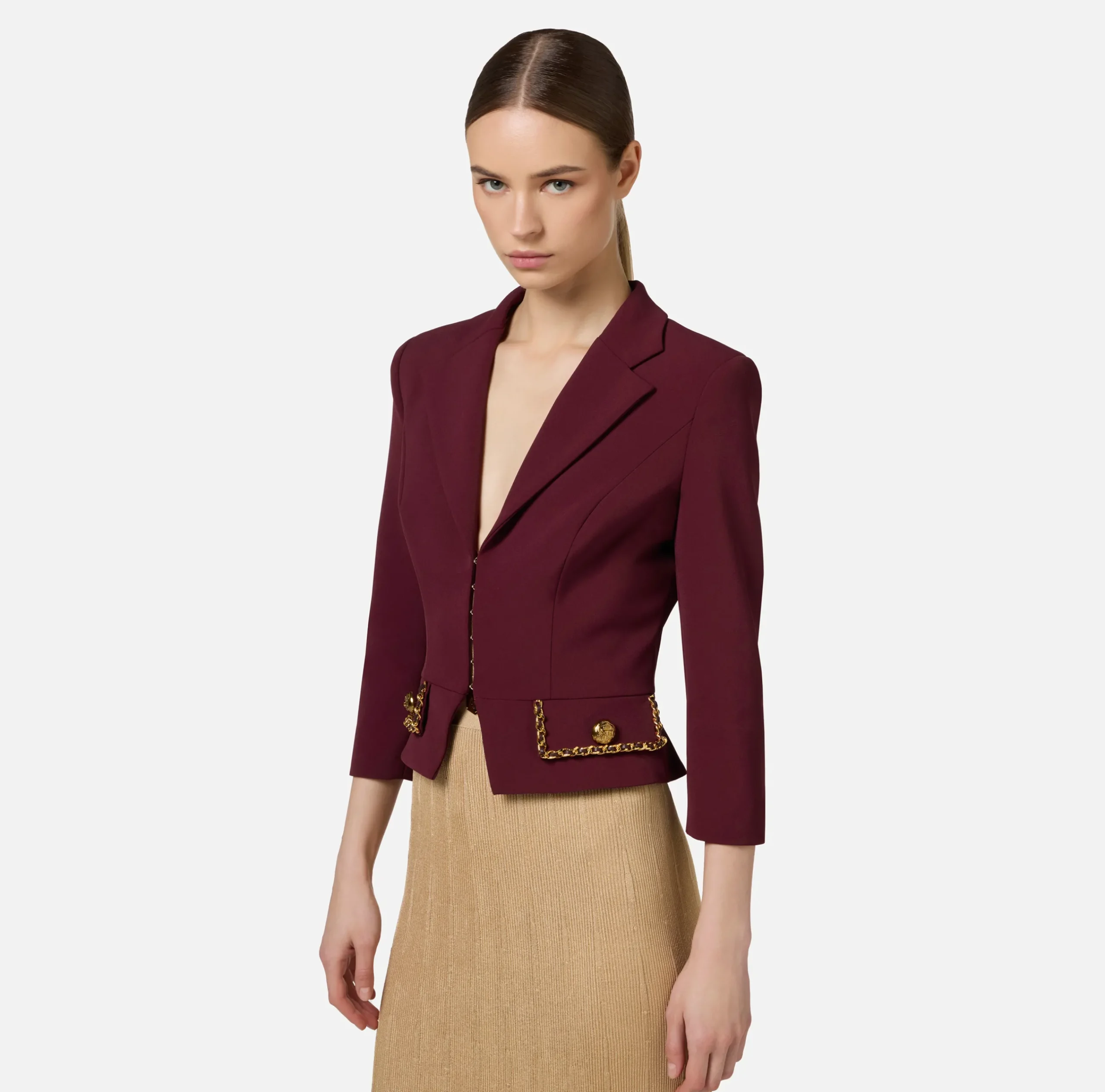 Be the first to review “Tailleur|Giacche & Trench|Elisabetta Franchi Giacca cropped in crêpe stretch con catena RougeNoir” Annulla risposta