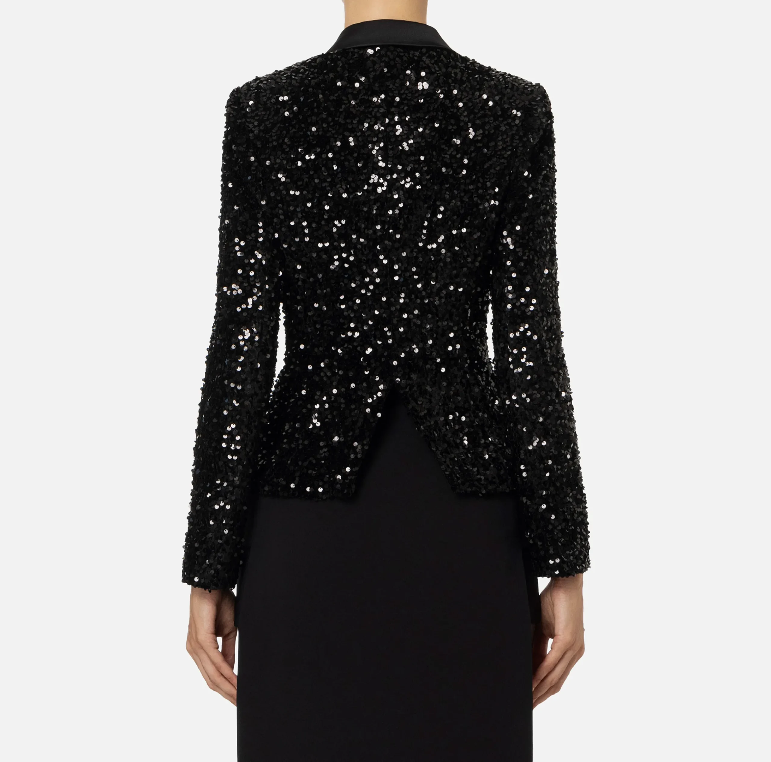 Tailleur|Giacche & Trench|Elisabetta Franchi Giacca doppiopetto in ciniglia ricamata con pailettes Nero
