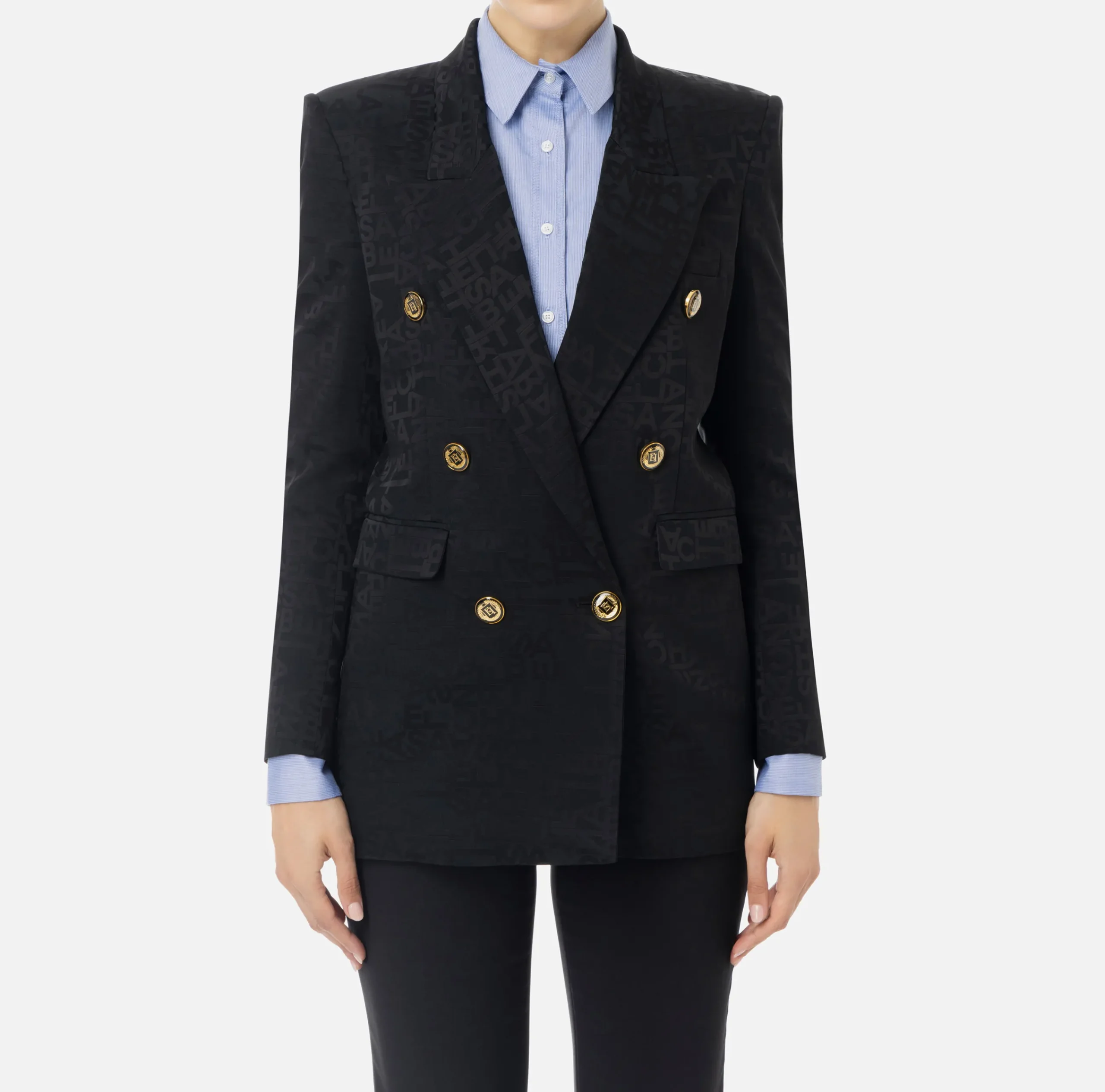Tailleur|Giacche & Trench|Elisabetta Franchi Giacca doppiopetto in crêpe jaquard lettering Nero