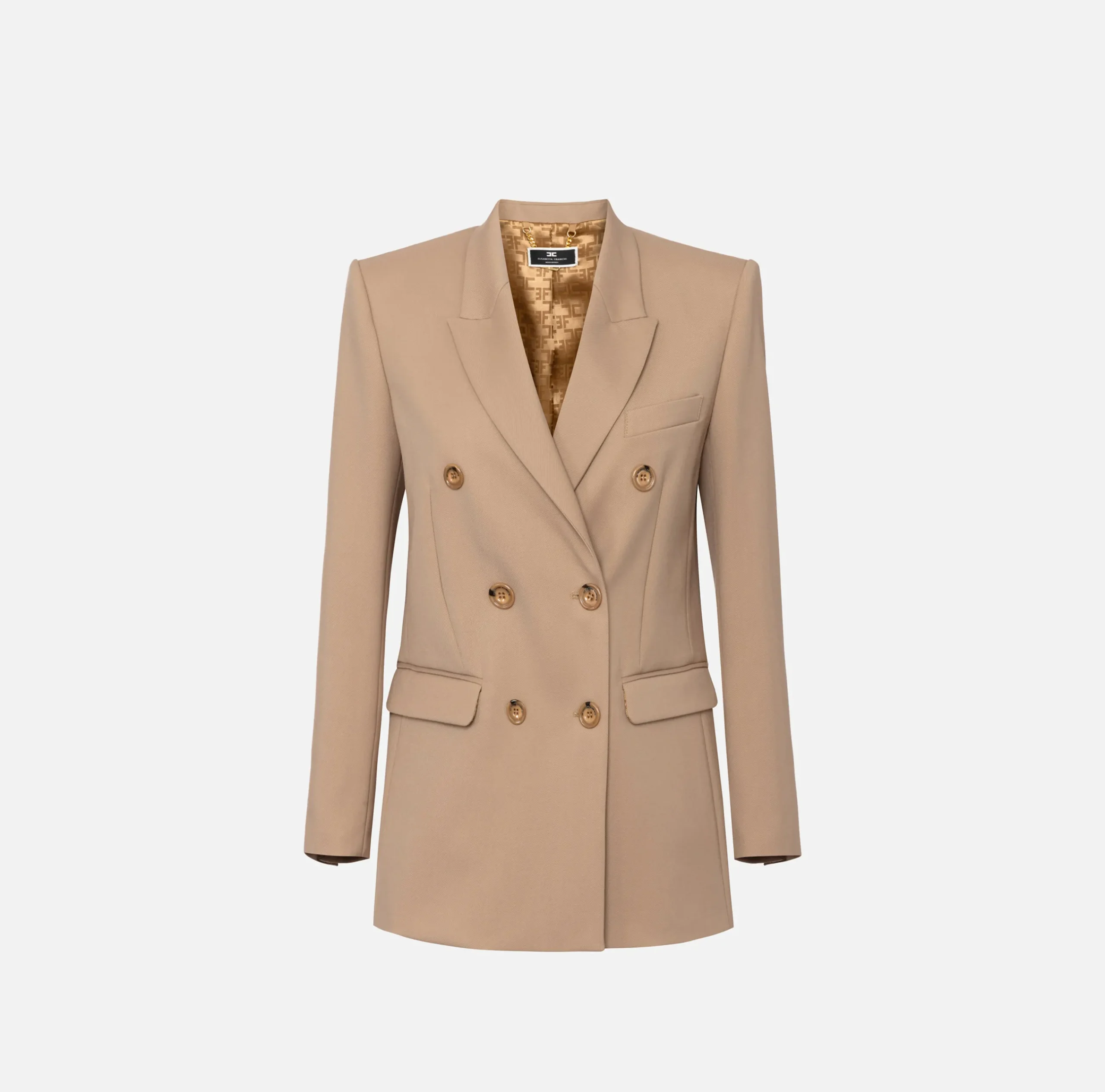 Tailleur|Giacche & Trench|Elisabetta Franchi Giacca doppiopetto in fresco di lana Camel