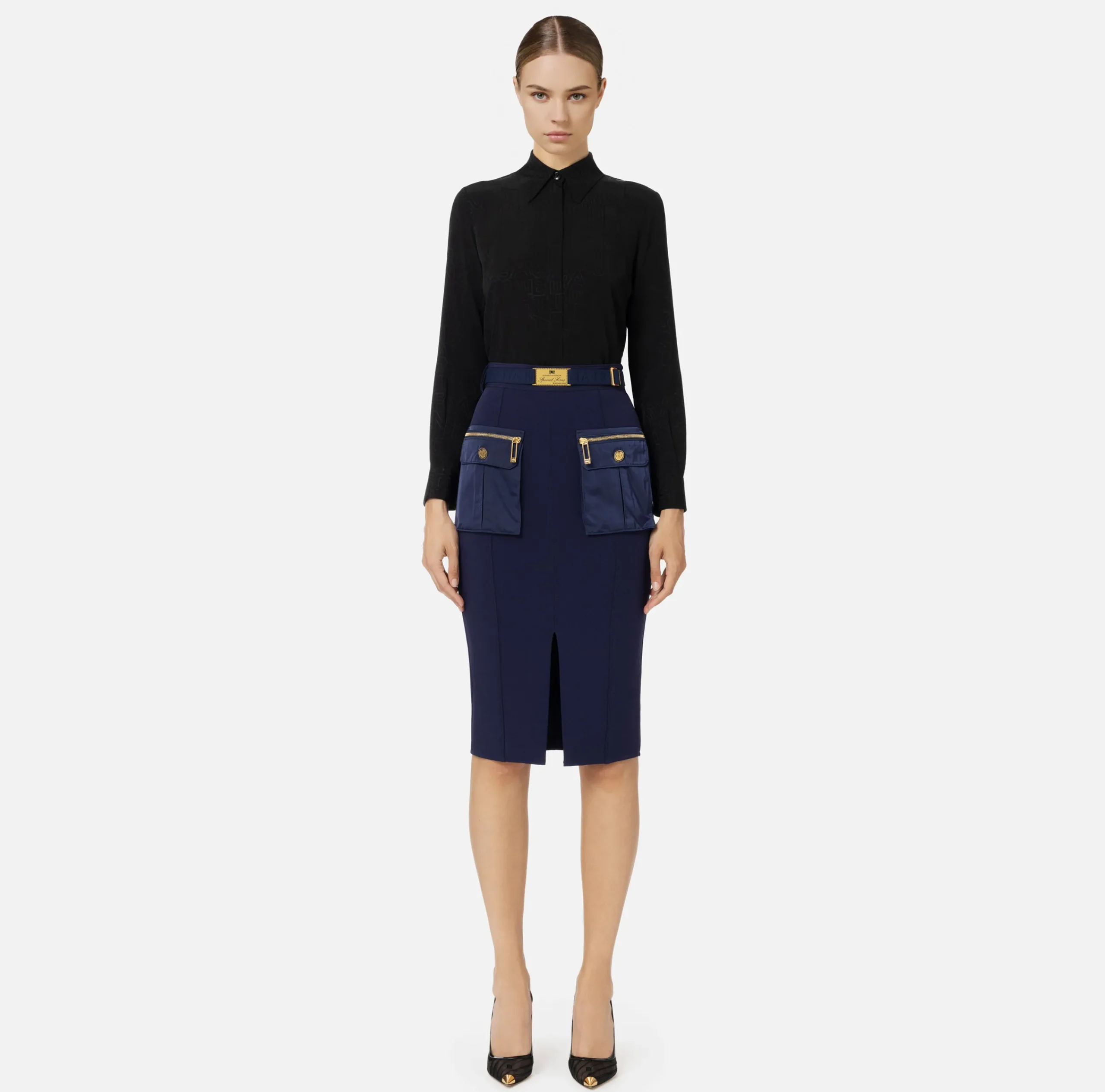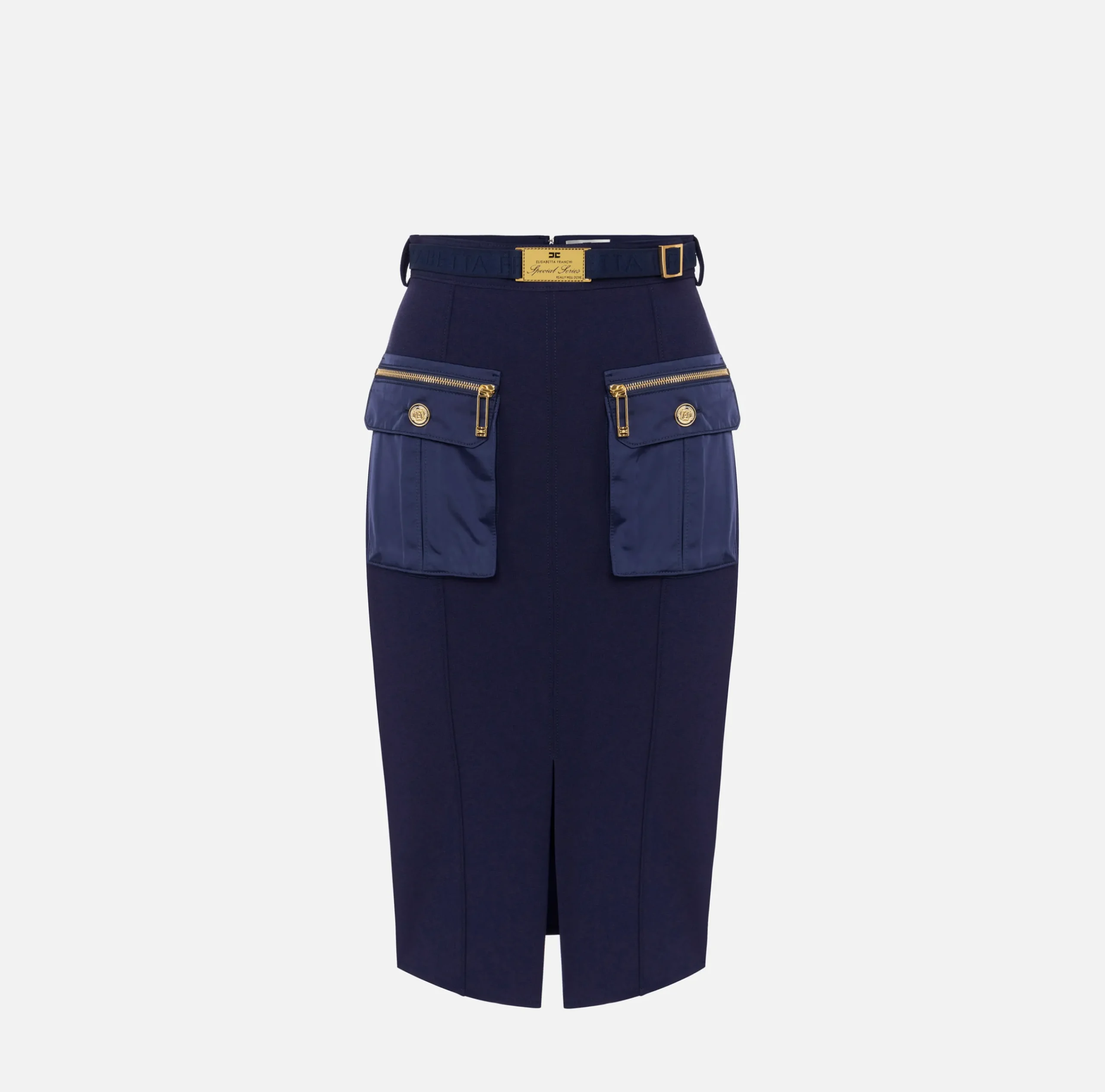 Tailleur|Gonne|Elisabetta Franchi Gonna midi in crêpe con tasche e cintura Navy