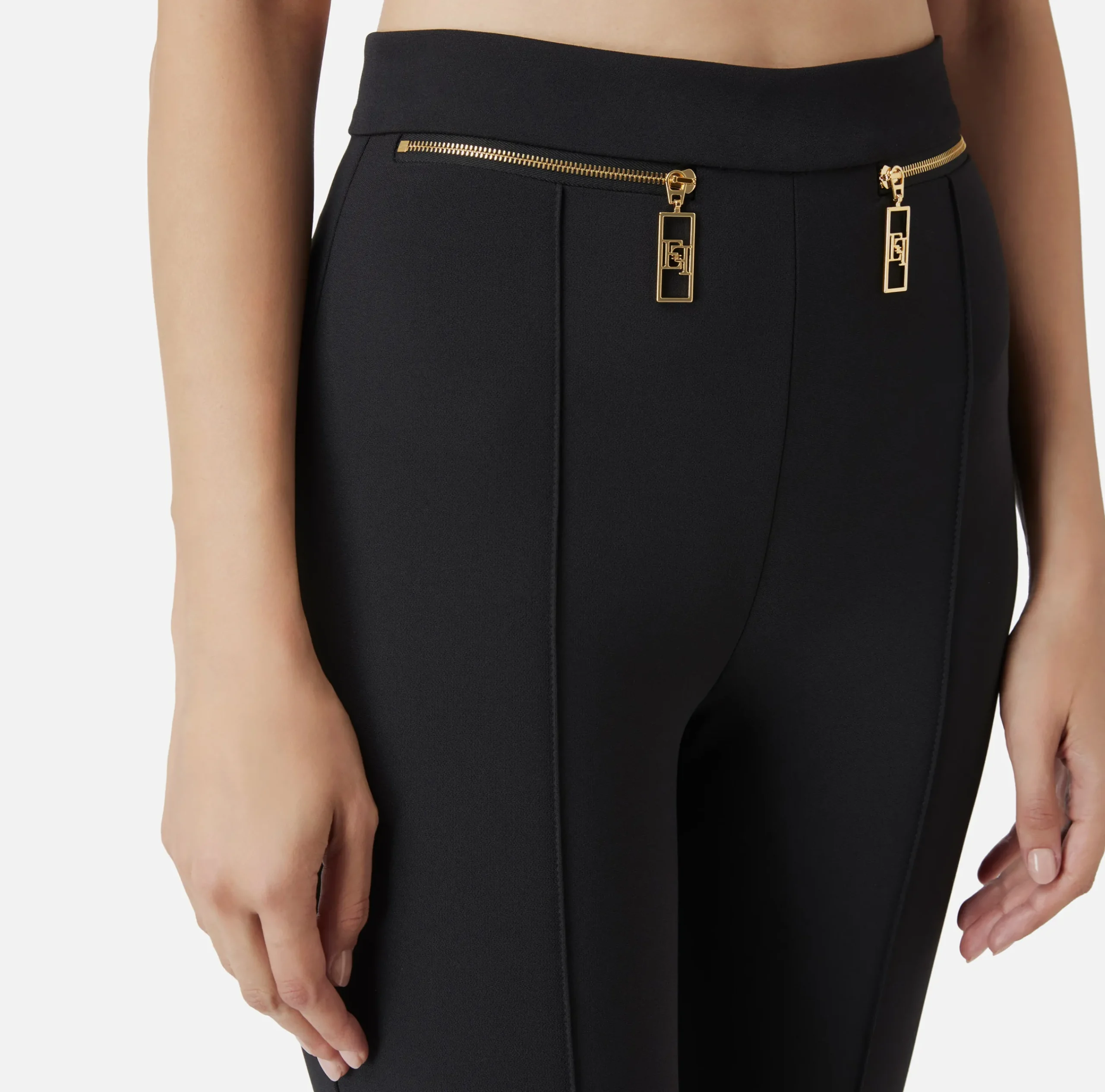 Tailleur|Pantaloni E Shorts|Elisabetta Franchi Pantalone dritto in crêpe con zip Nero