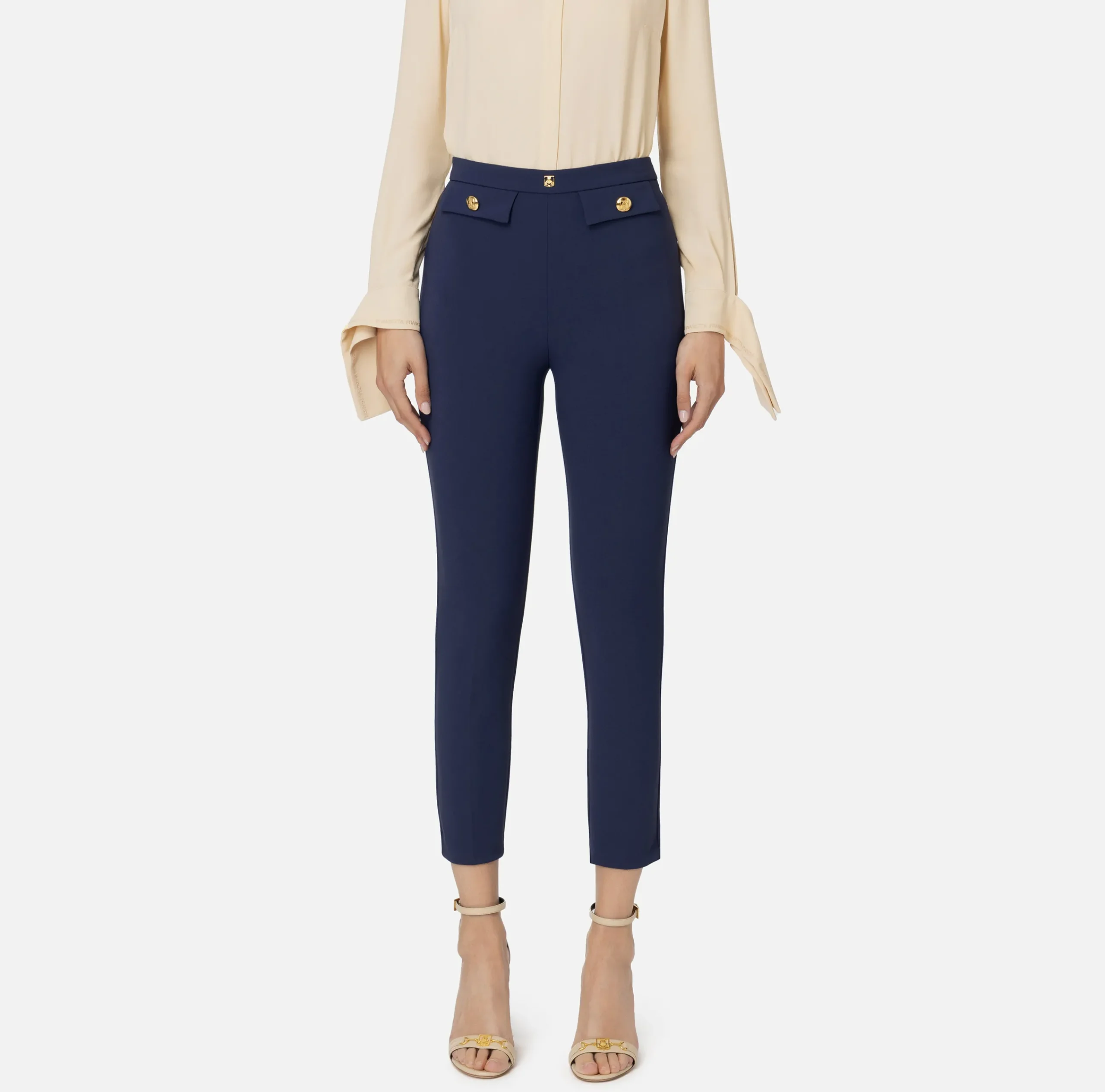 Tailleur|Pantaloni E Shorts|Elisabetta Franchi Pantalone dritto in crêpe stretch con rivetto logo Navy