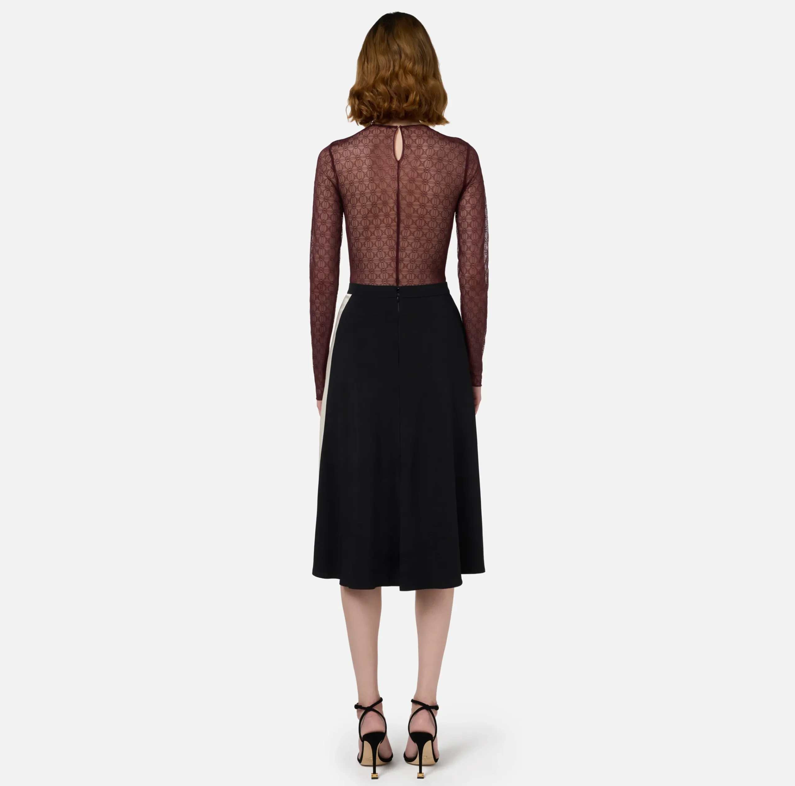Top, T-Shirt & Body|Elisabetta Franchi Body in tulle jacquard con coppe RougeNoir