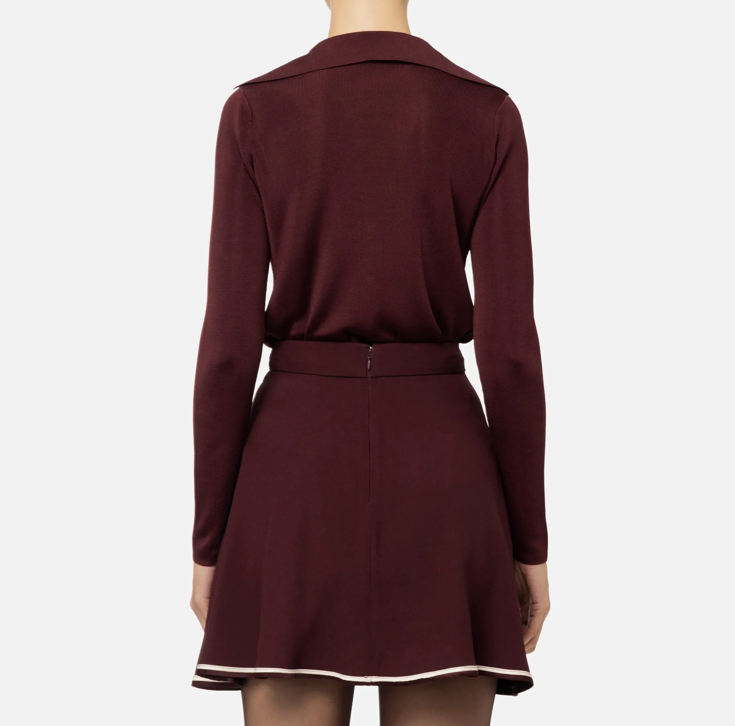 Body in viscosa lucida a maniche lunghe con colletto e abbottonatura tipo camicia. È caratterizzato da taschino con ricamo logo a filo in tono.