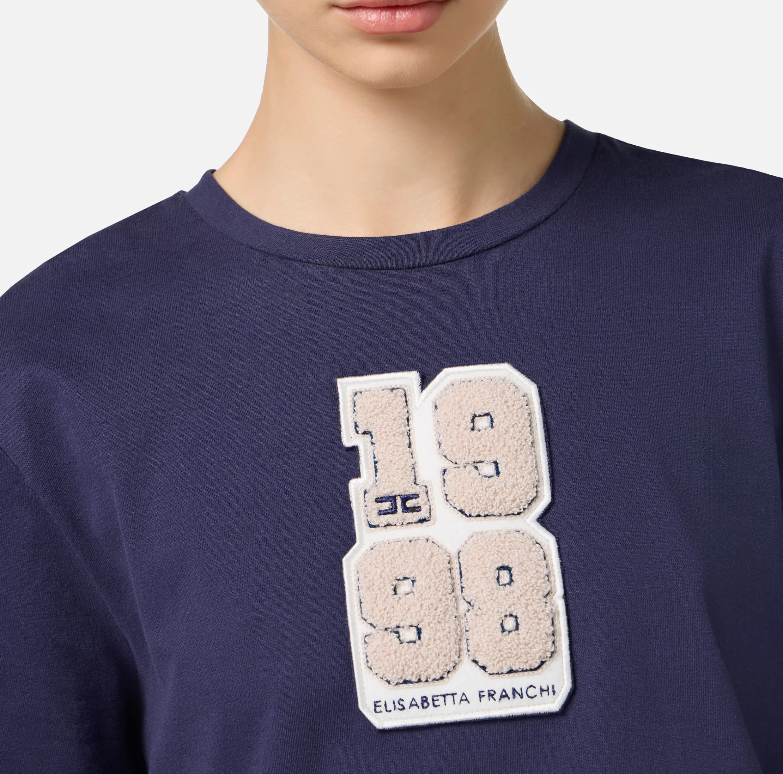 Top, T-Shirt & Body|Elisabetta Franchi T-shirt in cotone con patch logo stile college Navy