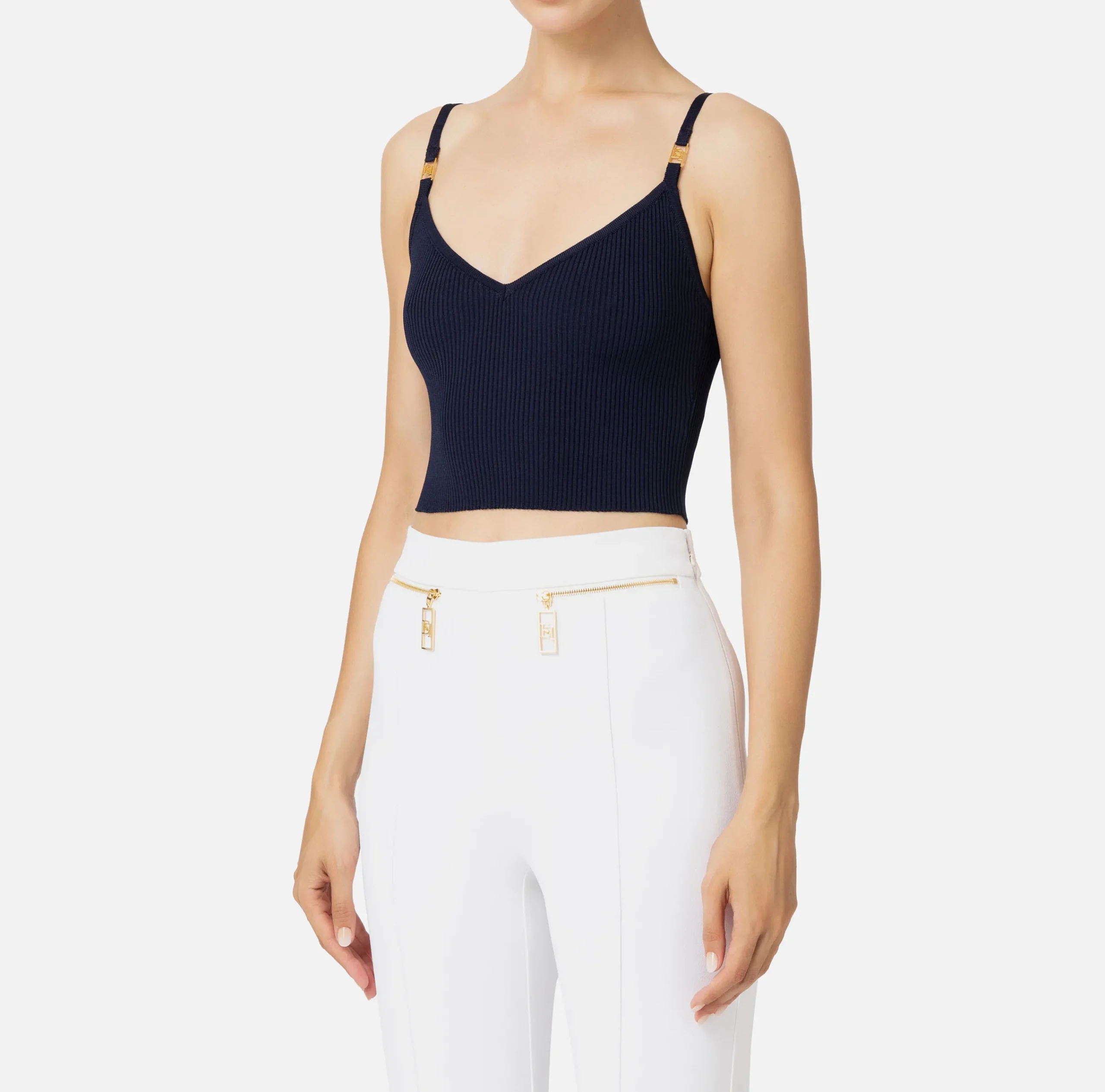 Top bustier in misto viscosa con spalline sottili e passanti logo in metallo dorato.