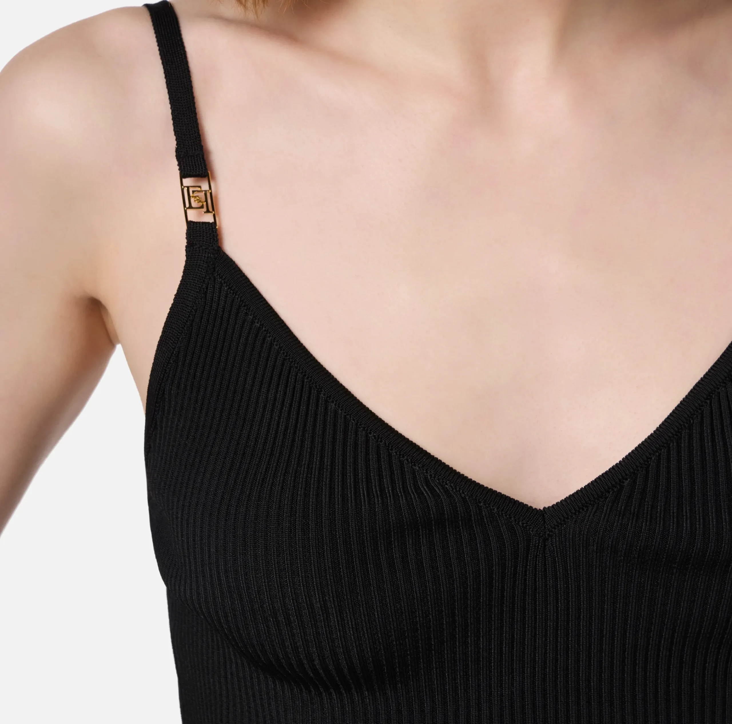 Top bustier in misto viscosa con spalline sottili e passanti logo in metallo dorato.
