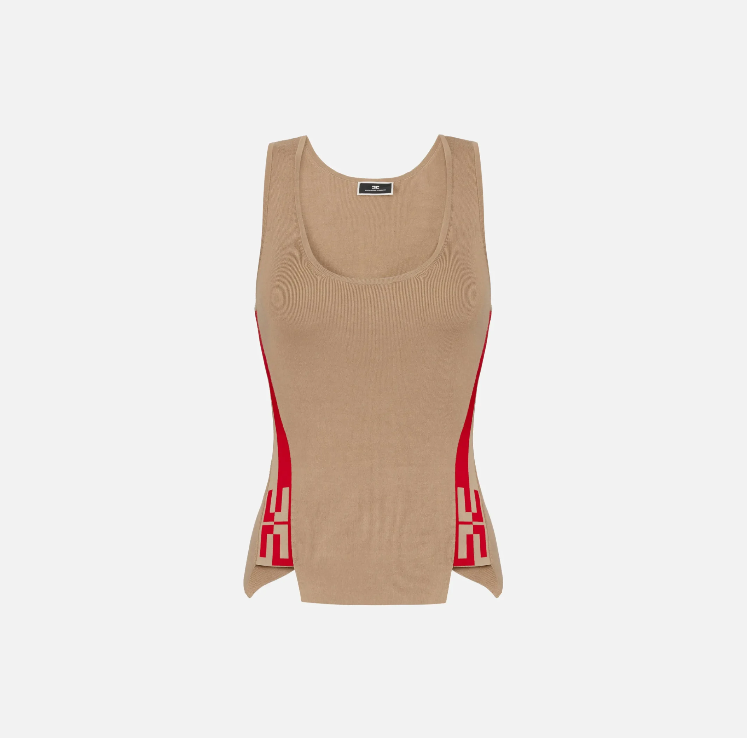Top, T-Shirt & Body|Elisabetta Franchi Top in viscosa con bande logate Camel/RedPassion