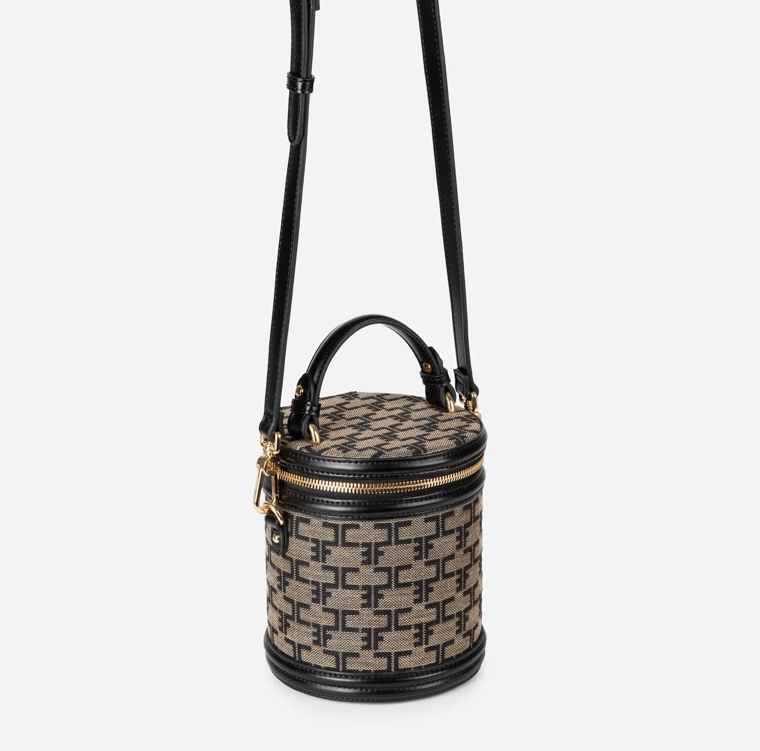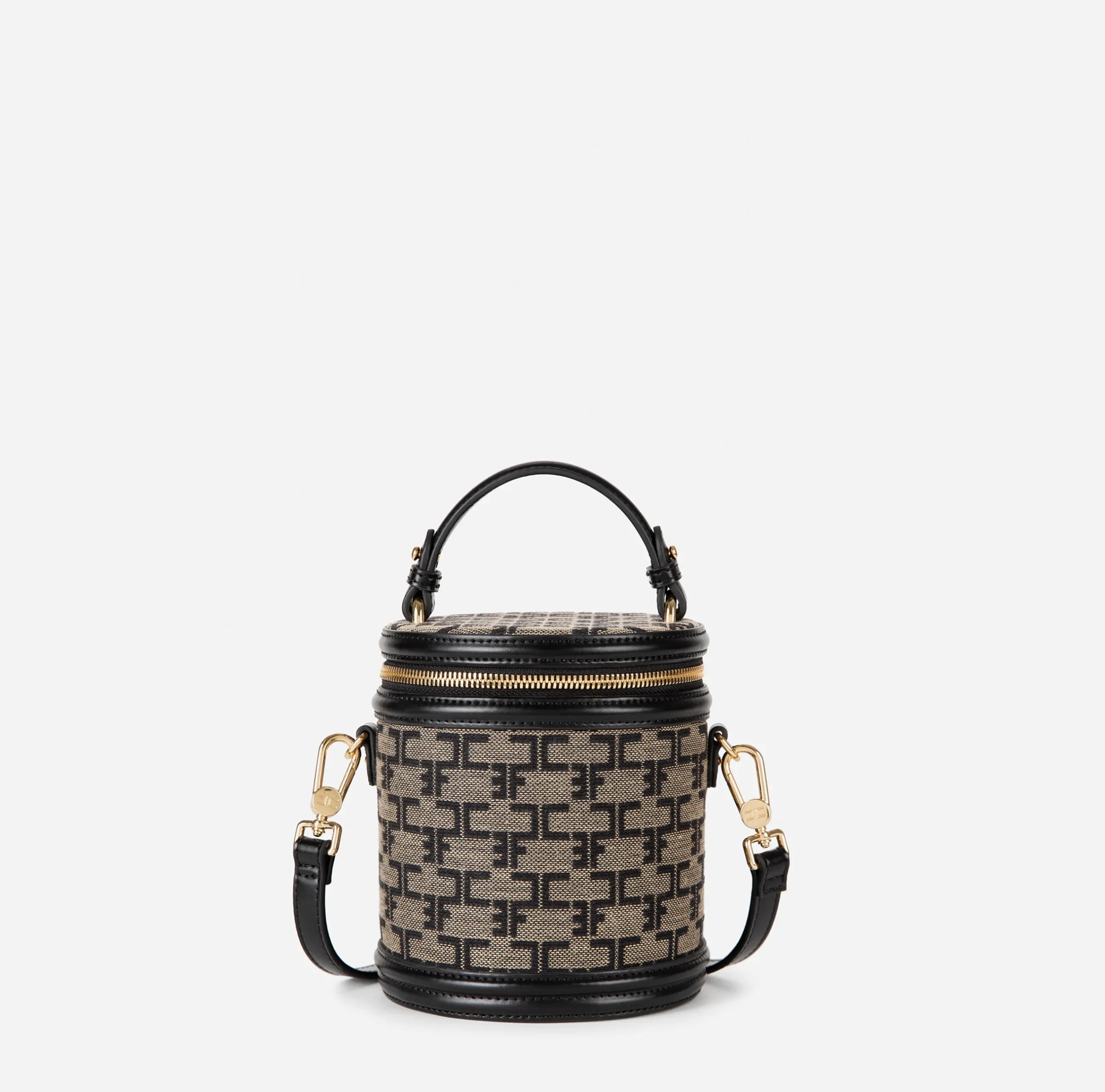 Valigeria|Borse A Mano|Elisabetta Franchi Bauletto Cilindro Monogram Travel Liquirizia/Nero