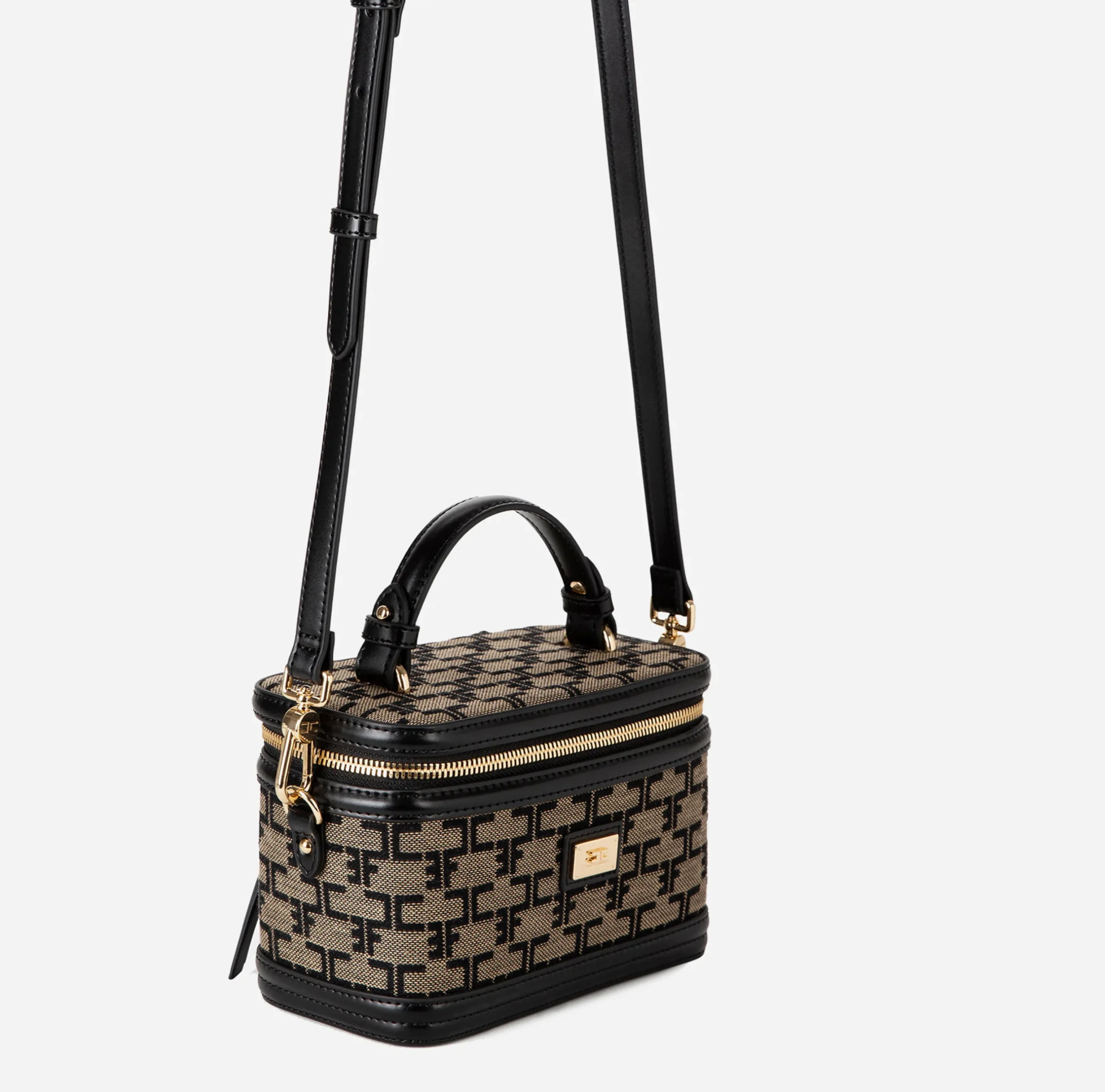 Valigeria|Borse A Mano|Elisabetta Franchi Trousse Monogram Travel Liquirizia/Nero