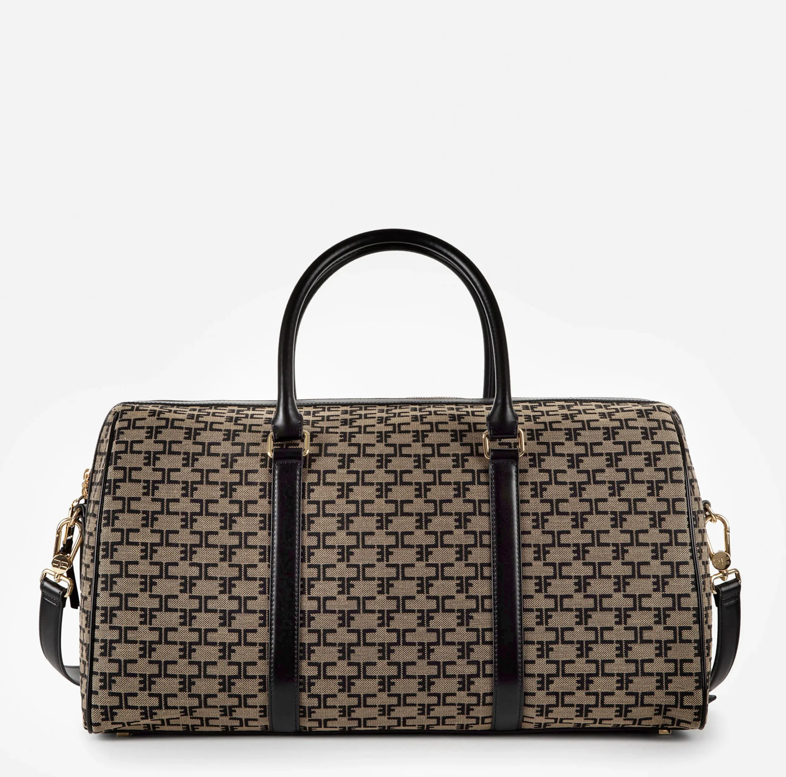 Valigeria|Elisabetta Franchi Borsone Weekend Monogram Travel Liquirizia/Nero