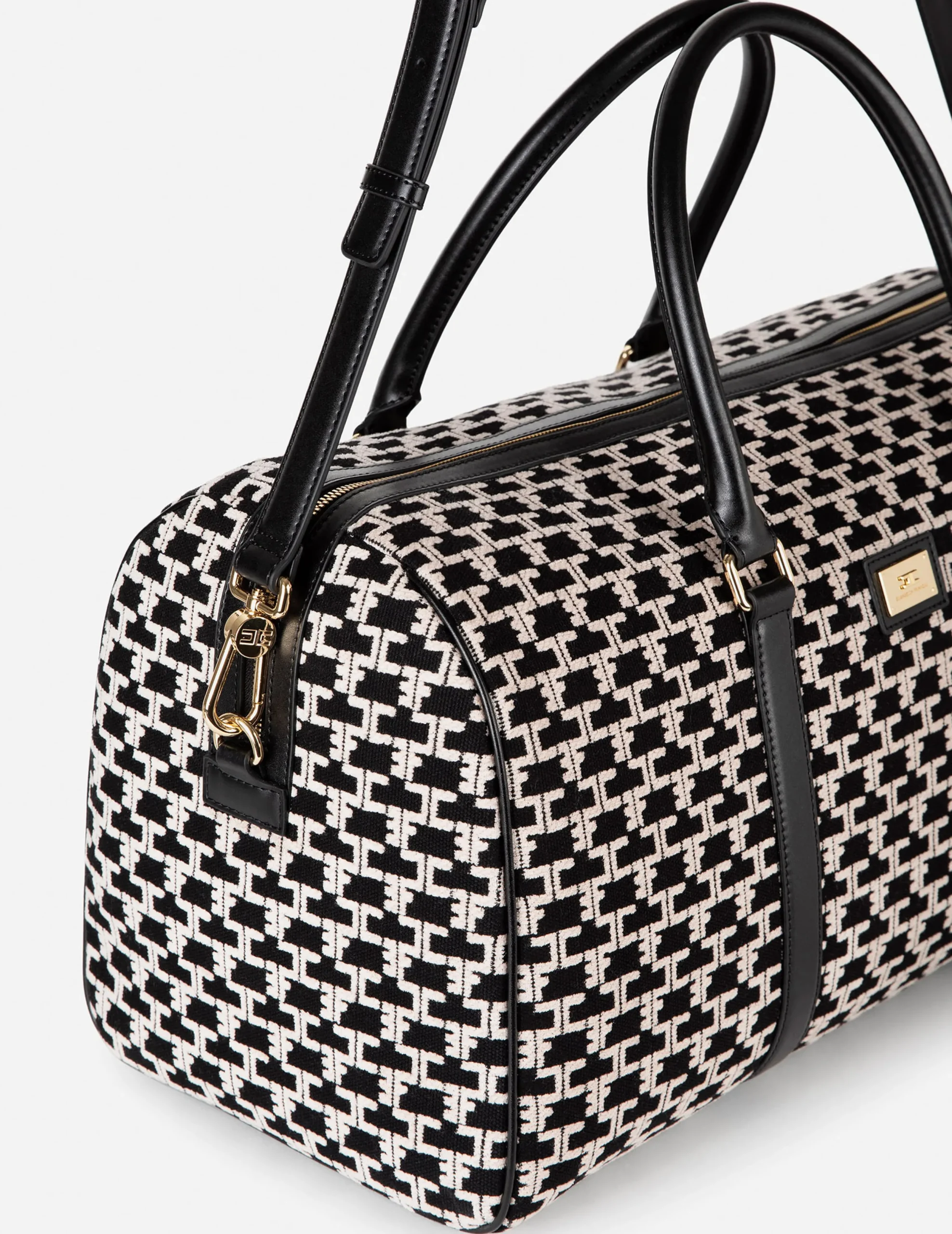 Valigeria|Elisabetta Franchi Borsone Weekend Monogram Travel Nero/Burro